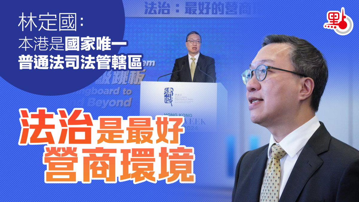 【點新聞報道】律政司司長林定國今日(8日)在法律周閉幕活動致辭表示,香港是國家唯一實行普通法的地區,且使用雙語,對在香港及內地發掘商機有重要作用。正如習近平總書記強調,法治是最好的營商環境。