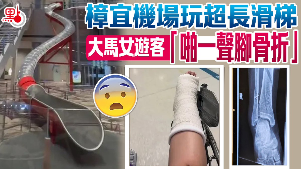 然而,當時並無機場相關人員在現場,她的朋友於是到最靠近的櫃枱尋求援助,約15分鐘後,工作人員推著輪椅前來幫忙。「米子」指出,事後就醫發現腳部骨折,醫生表示她需要進行手術,她決定飛回大馬再動刀,於11月7日完成手術。「米子」也透露,其他同行的3名朋友在玩滑梯時也有受傷,分別是膝蓋和手肘等處瘀傷。