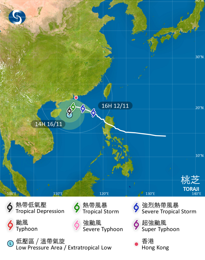 天文台指出,預料桃芝會在星期四(14日)早上於本港以南200公里左右掠過。天文台會視乎屆時桃芝的強度、其烈風區與珠江口的距離及本地風力變化,評估是否需要改發更高熱帶氣旋警告信號。