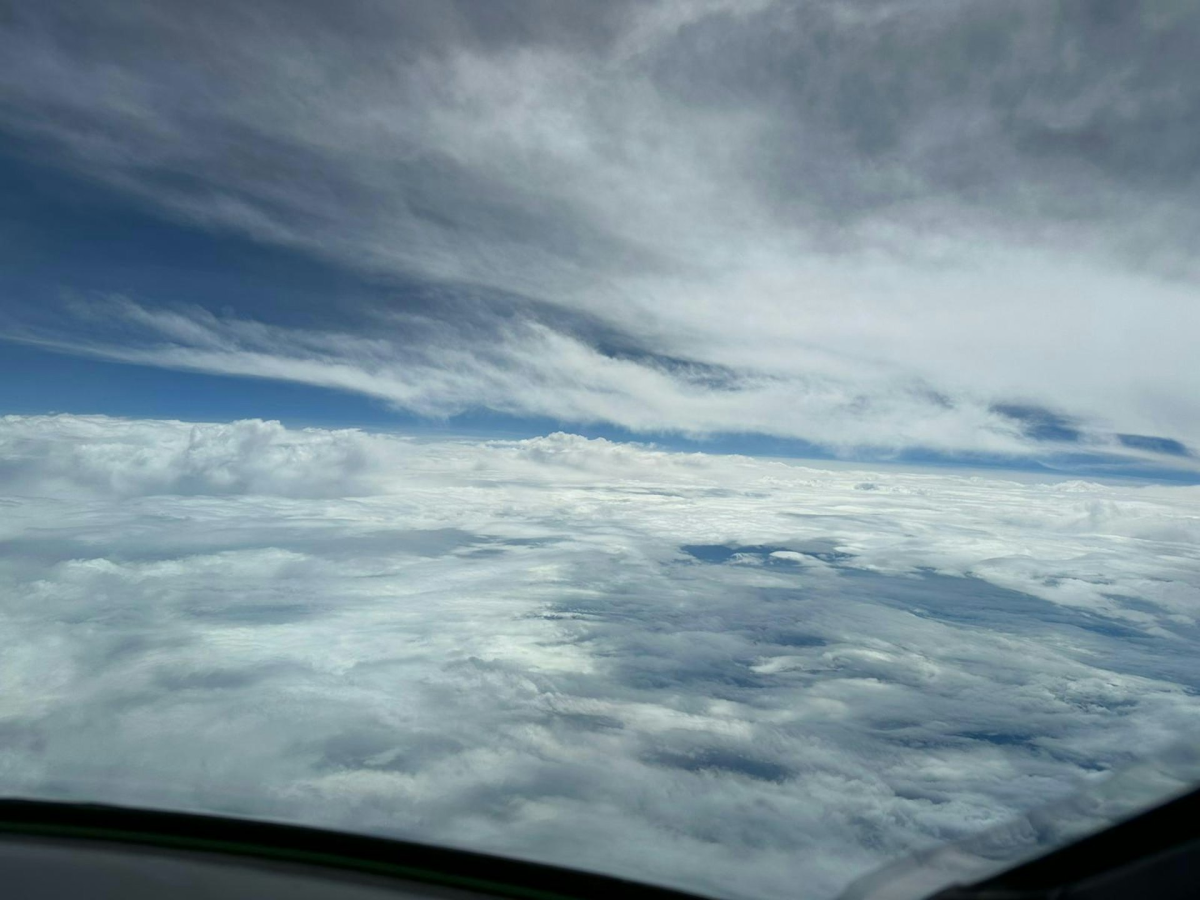 【點新聞報道】熱帶風暴桃芝逼近本港,天文台今日(13日)下午發出3號風球,料會至少維持至今晚11時。政府飛行服務隊今日出動定翼機,飛入桃芝探測風眼及投下探測儀搜集數據。