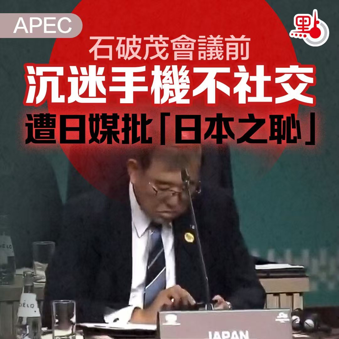 11月17日,日本電視台播出的一檔新聞節目曝光了APEC領導人非正式會議期間,各國領導人相互問候的場景。從畫面中可以見到,日本首相石破茂在會場上始終坐在自己座位上,沉浸在手機的世界裏面。甚至在馬來西亞首相安華和加拿大總理特魯多前來問候、打招呼時,依舊無動於衷,直接坐着與他們握手。