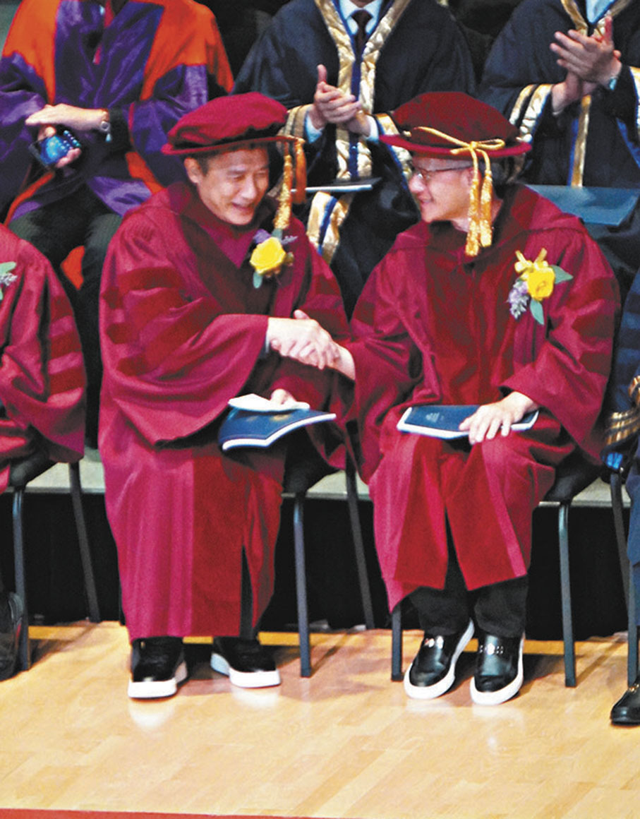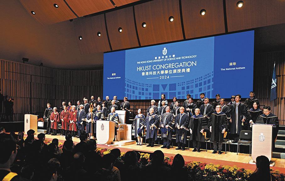 港科大昨日舉行學位頒授典禮,向4名傑出領袖包括黃仁勳、首位威尼斯影展終身成就金獅獎亞洲演員得主梁朝偉(相關新聞刊A13)、諾貝爾化學獎得主邁克爾·萊維特,及數學界最高榮譽菲爾茲獎得主大衛·曼福德頒授榮譽博士,以表揚他們的重大成就及其對社會的貢獻。