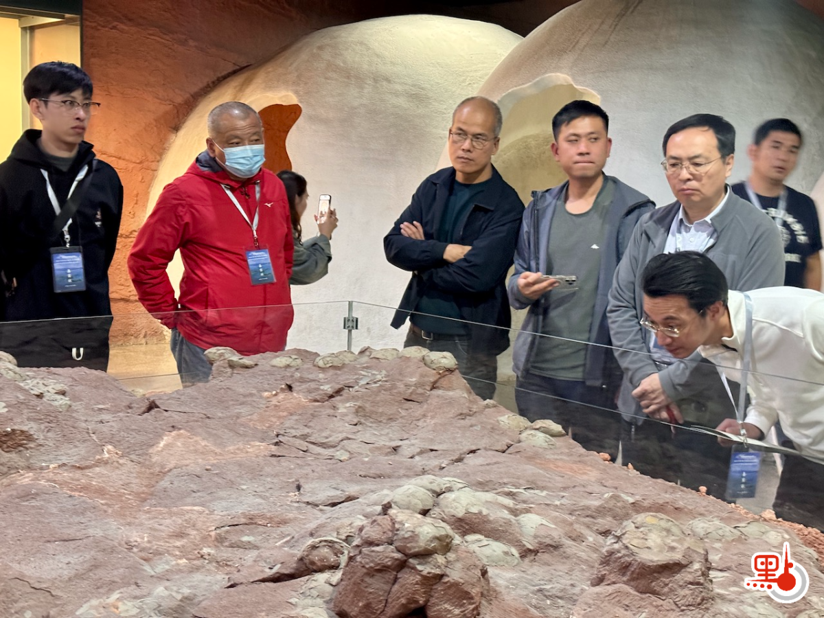 【點新聞報道】一具長20米、高8米的汝陽黃河巨龍「骨架」佇立在挑高的大廳裏,走進一旁的「恐龍產房」,各種圓形、長形、稜柱形等形狀不一的恐龍蛋化石密密麻麻地堆積在地,一旁一塊不起眼的「石頭」上,無法辨認形狀的印記竟是來自7000萬年前的恐龍足跡……海外華文傳媒合作組織2024廣東高質量發展採風團1日來到河源恐龍博物館,在「恐龍之鄉」河源探秘華南地區的神奇古生物文化。