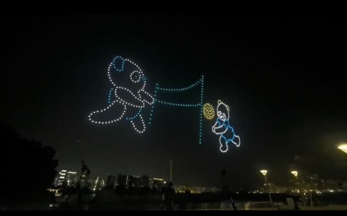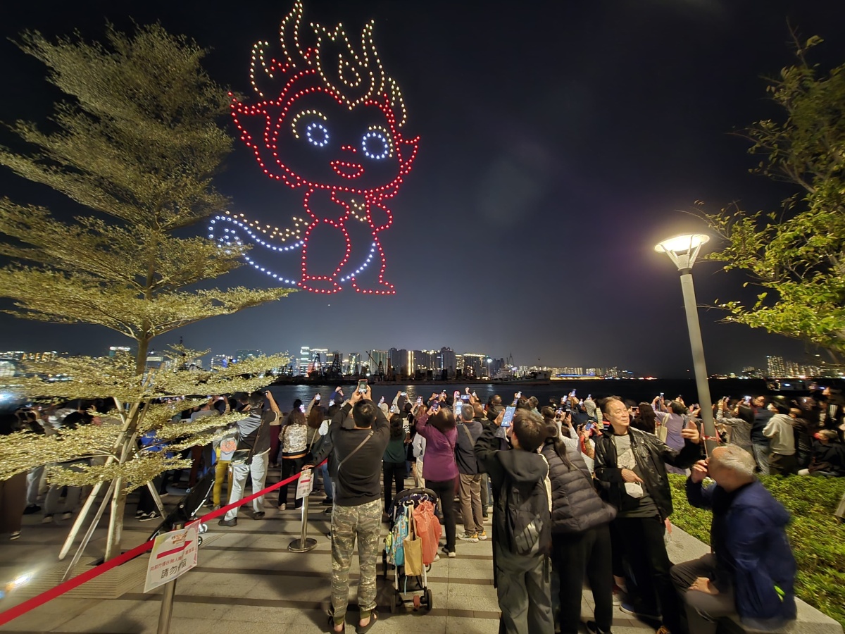 本次無人機表演公眾展示九龍城眾多特色,包括代表九龍城區的龍形公仔,啟德舊機場、宋皇臺、九龍城寨等;表演亦以「熊貓運動員」呈現明年本港承辦的8個全運會項目,包括手球、場地單車、劍擊、沙灘排球、七人欖球等。