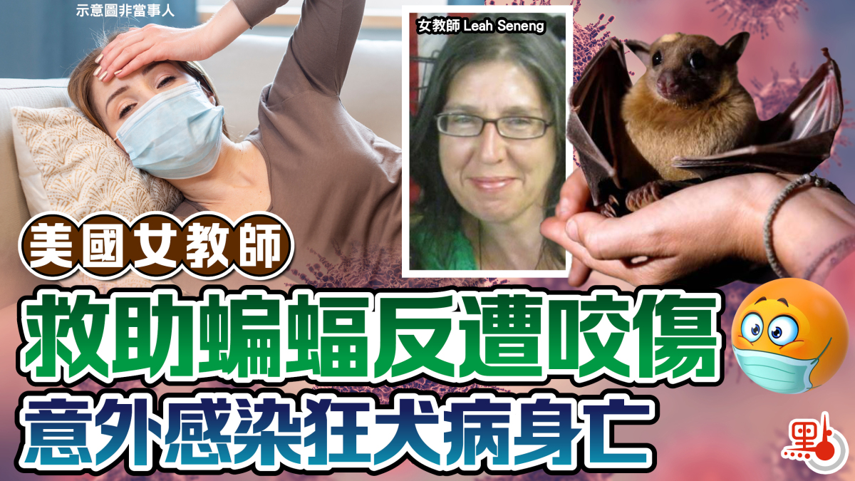【點新聞報道】美國加州發生一宗憾事。一名女老師在教室內發現蝙蝠,她嘗試救援時反遭蝙蝠咬傷,最終感染狂犬病不幸身亡。