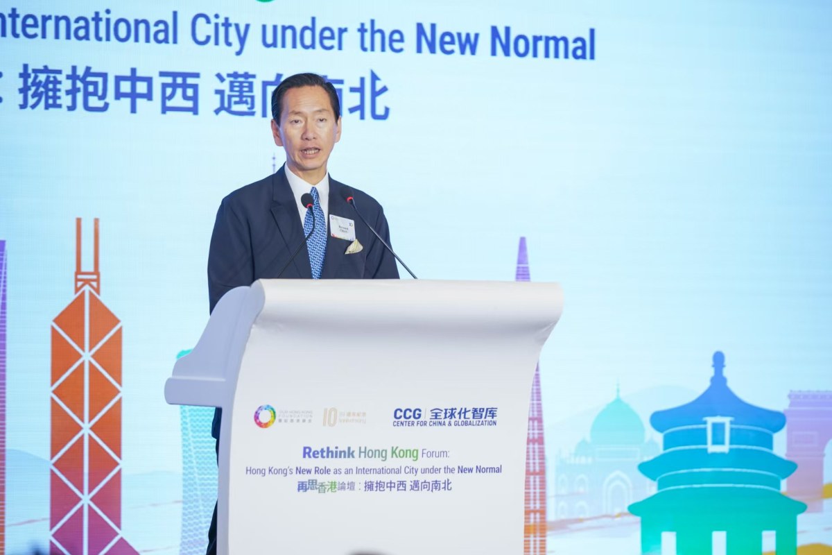 國務院原參事王輝耀在致辭中提到,香港作為一個充滿活力的國際都市和東西方之間的重要門戶,憑藉其世界級的金融基礎設施、高效的法律體系和國際化的人才,持續繁榮發展。儘管面臨新常態的挑戰,香港仍然扮演着超級連接人、跨文化適配者和橋樑建設者的角色。