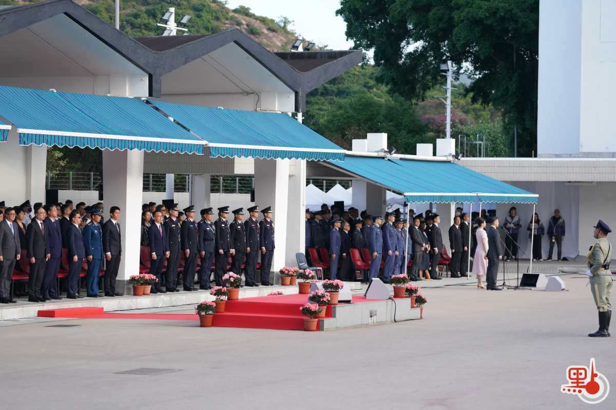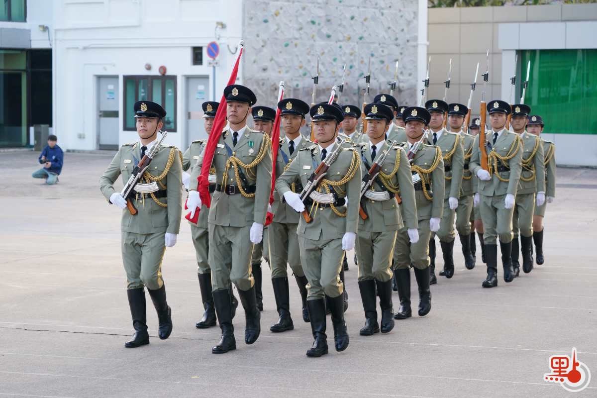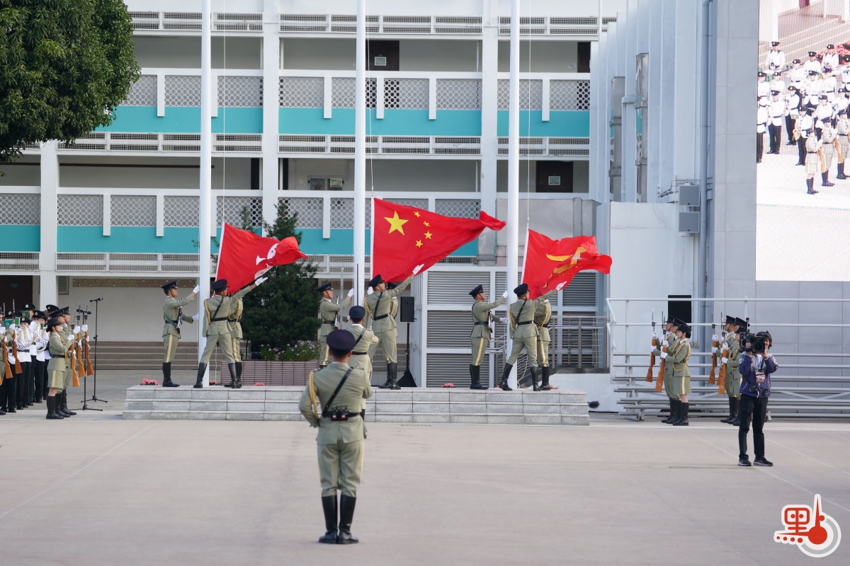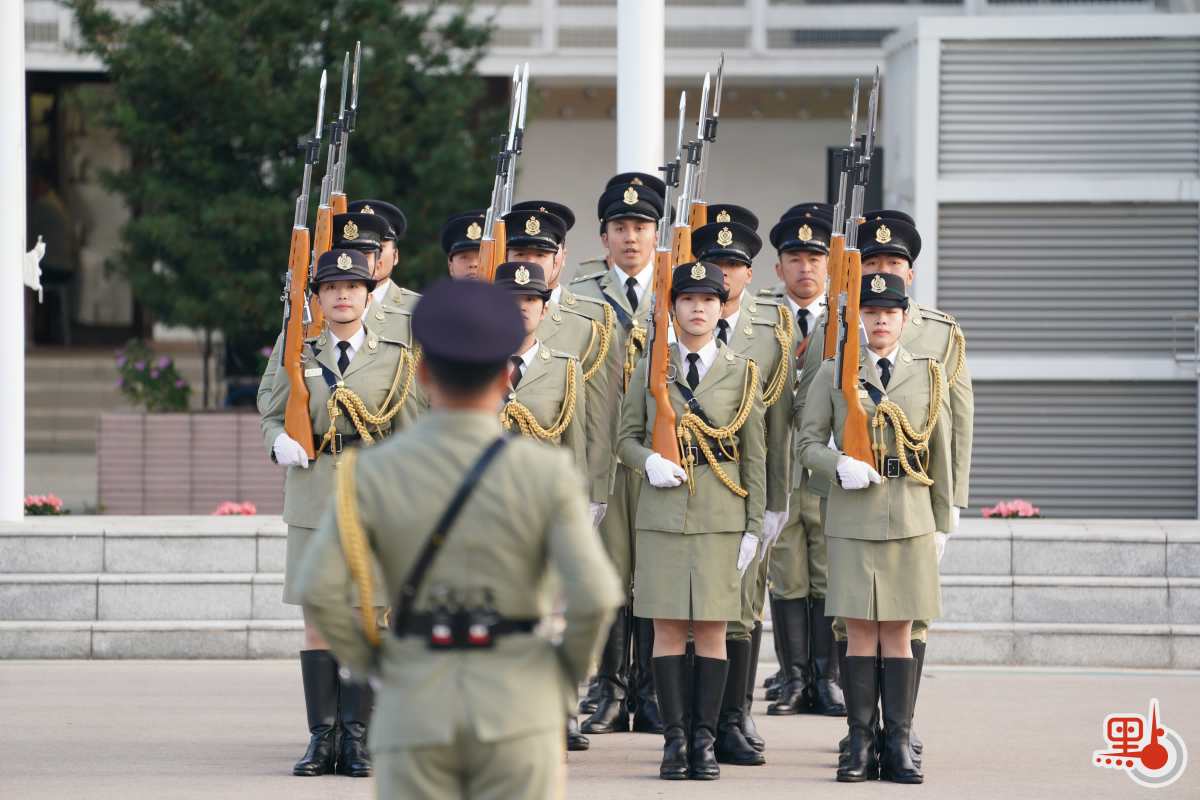 參與升旗儀式的隊伍來自香港海關、香港警務處、消防處、入境事務處、懲教署和政府飛行服務隊。