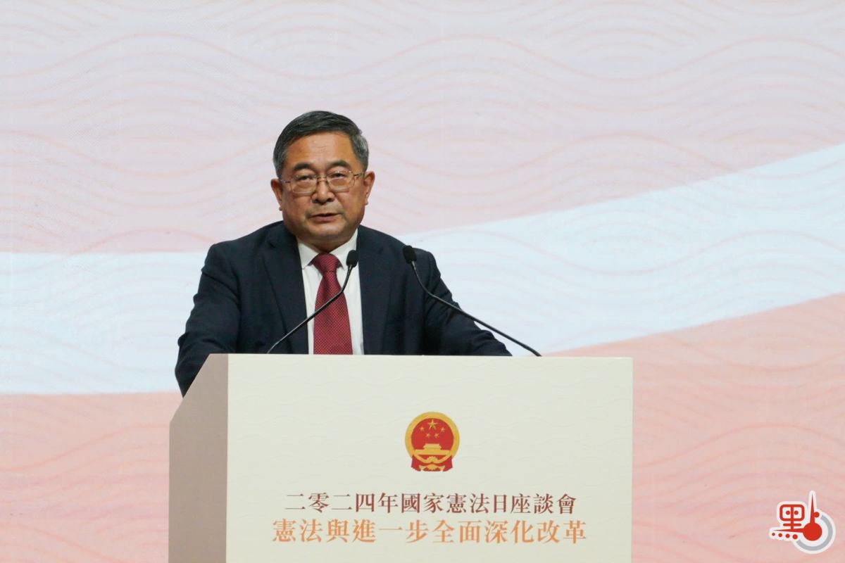 中國社會科學院學部委員、中國社會科學院法學研究所所長、中國社會科學院大學法學院院長、中國法學會憲法學研究會常務副會長莫紀宏發表主題演講,提到1982年現行憲法五次修正的特點——每次修改都體現改革開放精神。