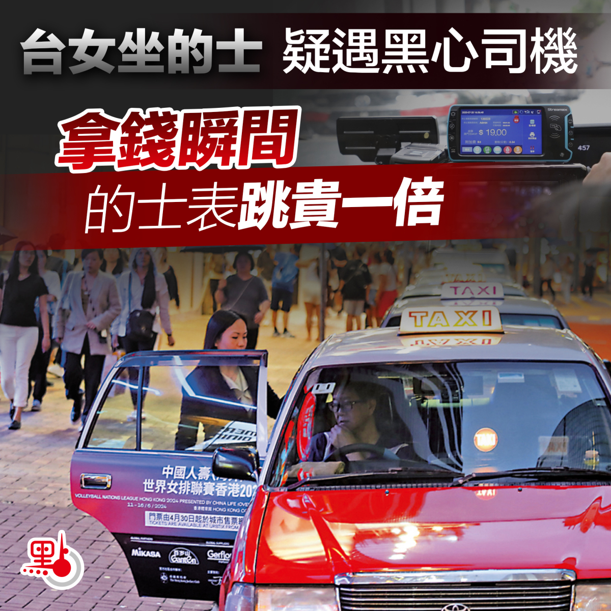 【點新聞報道】日前一段台女香港遊玩疑遇黑心的士司機的影片在網上熱傳。事主從香港迪士尼搭的士去佐敦,上車前已問明按表收費,結果到達後,才低頭拿錢,一抬頭的士表竟突跳貴1倍。事後事主在社交平台上傳影片,講述自己的遭遇,亦聲稱拍攝此片的目的是為了提醒廣大網民吸取教訓「目的只是告訴要到香港旅行的朋友,大家注意一下,不要跟我一樣~畢竟我們賺的每分錢都很辛苦,不該被這樣對待吧!」