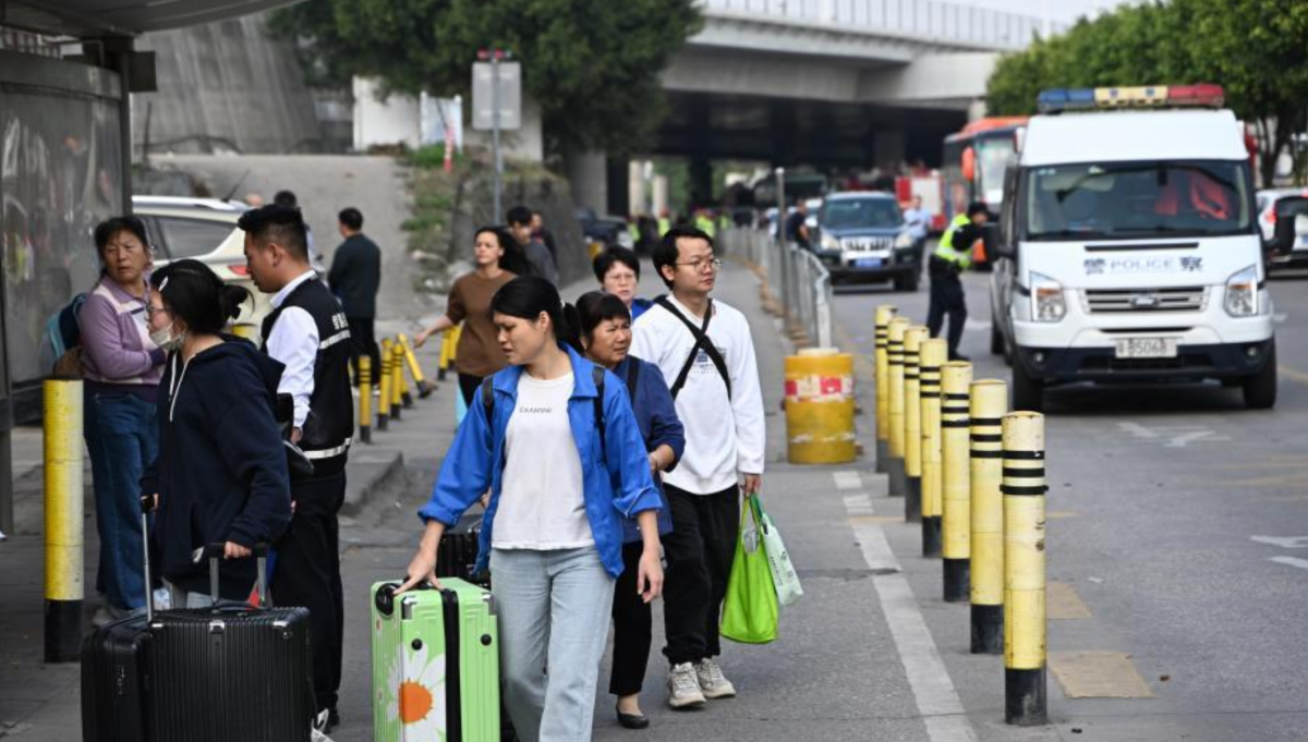 12月5日,救援施工隊前往地面坍塌現場進行救援。另外,地面坍塌現場附近居民紛紛攜帶行李撤離,附近學校的學生亦乘坐大巴撤離。