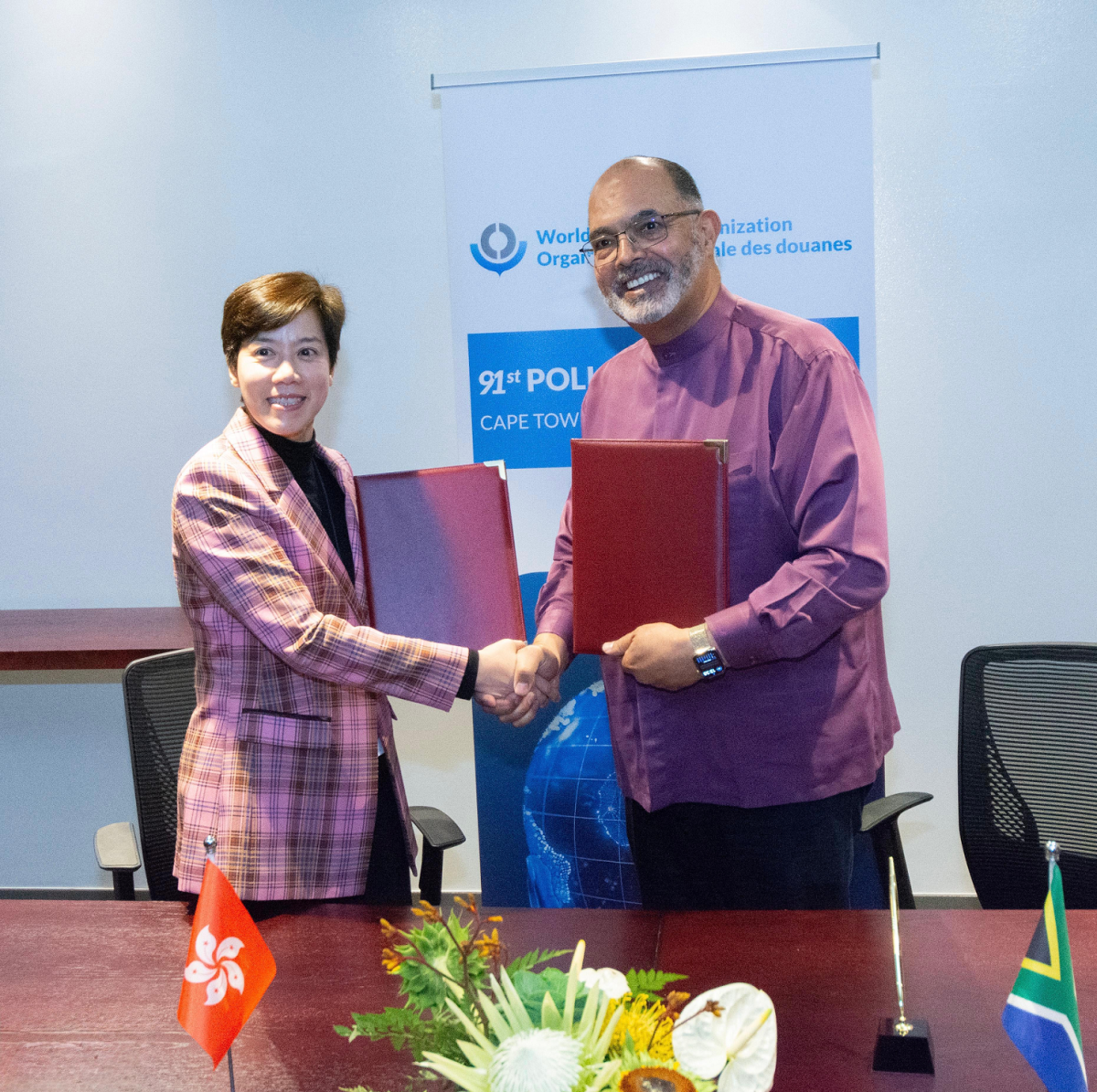 【點新聞報道】海關關長何珮珊於12月3日至5日率領代表團,出席在南非開普敦舉行的世界海關組織第91屆政策委員會會議,並於12月6日至7日到訪沙特阿拉伯,於會議及訪問期間達成多項海關合作,包括與南非海關簽訂《認可經濟營運商互認安排》、與智利海關及秘魯海關簽訂《認可經濟營運商互認安排行動計劃》,以及與沙特阿拉伯海關簽訂《海關合作及行政互助備忘錄》。