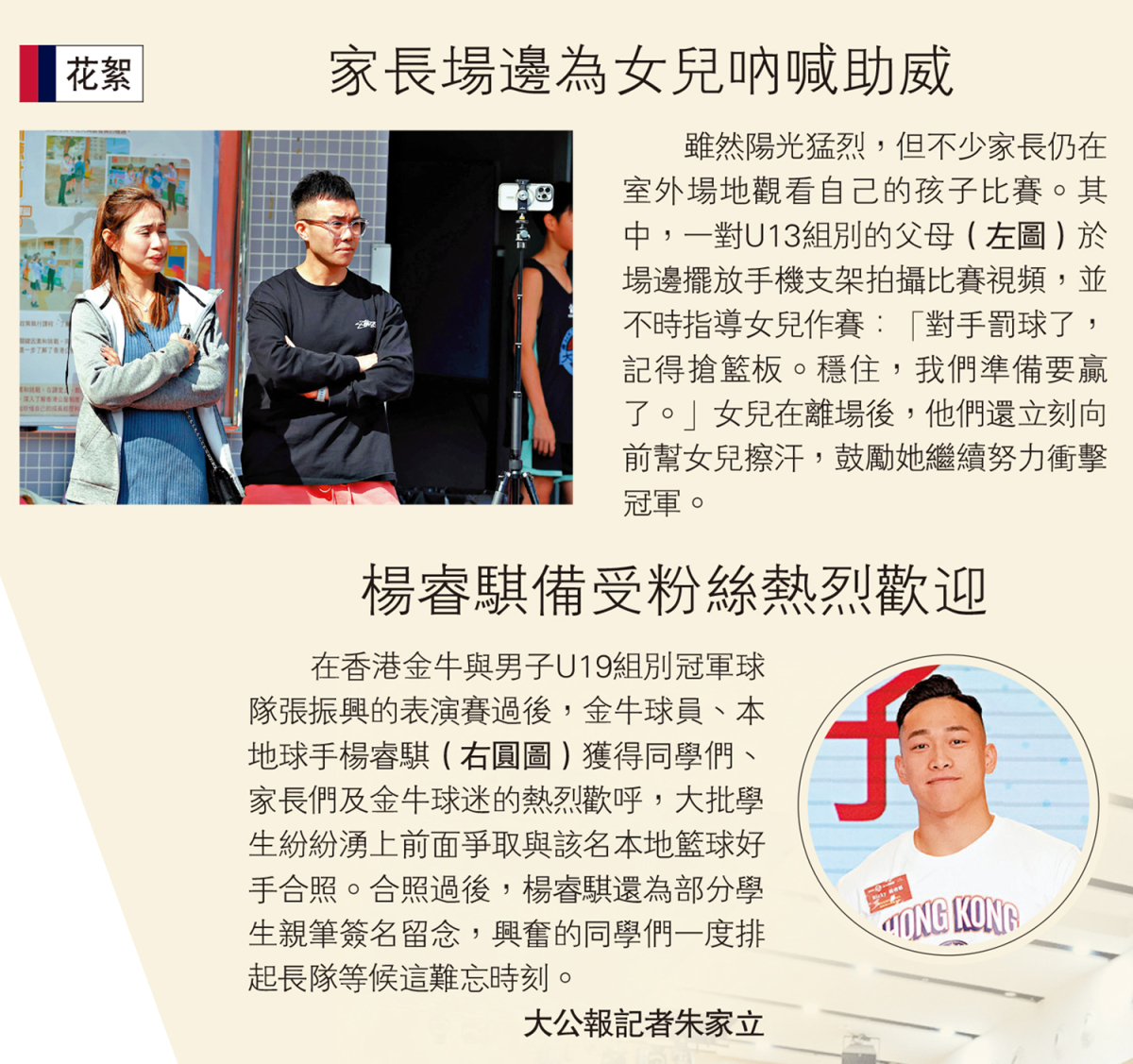 應屆全國男子籃球聯賽(NBL)冠軍香港金牛應邀出席與男子U19組別冠軍球隊張振興進行表演賽,前者球員楊睿騏、李禹豪、余柏林等賽後表示,透過比賽感受香港中學生的激情及對籃球的執著。