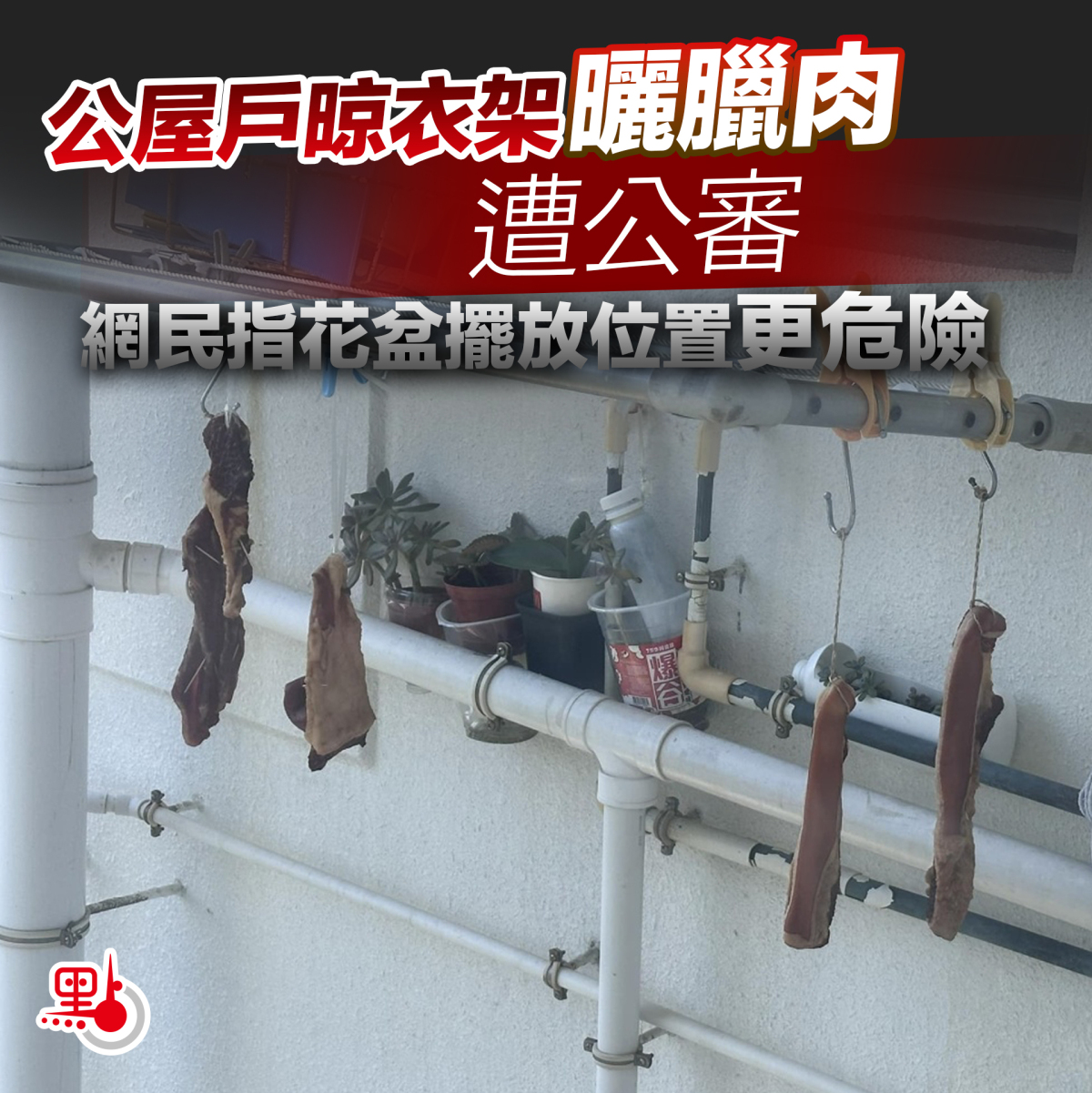 【點新聞報道】有公屋戶日前在facebook群組「公屋討論區 - 香港facebook群組」以「隔籬屋曬臘肉,係咪應該要舉報」為題上載相片公審鄰居,但意外地網民把注意力聚焦在另一事態更嚴重的事情上,指水渠邊擺放的花盆才是更值得關注的事「應該舉報花盆多啲」。