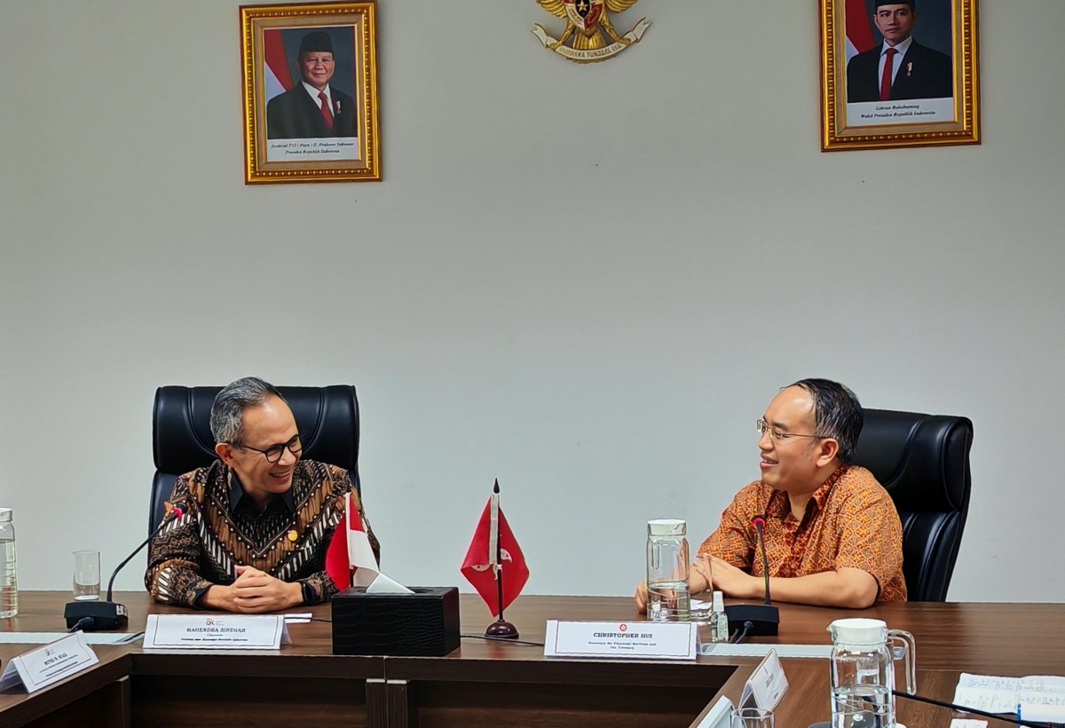 許正宇今早與印尼金融服務管理局委員會主席Mahendra Siregar會面,就促進虛擬資產及其他新型金融產品的發展深入交流。許正宇亦藉此機會向他介紹由香港金融發展局聯同香港證券及投資學會合辦、擬於2025年年初試行,以東南亞國家聯盟(東盟)國家高級行政人員為對象的培訓計劃。來自印尼的高級行政人員將屬首批獲邀的參加者之一,通過由行業專家主持的活動和到主要公營機構實地考察,深入了解香港作為國際金融中心的優勢。