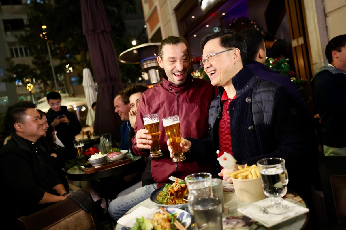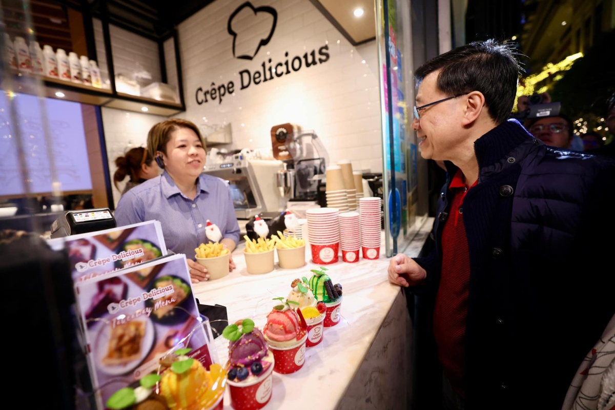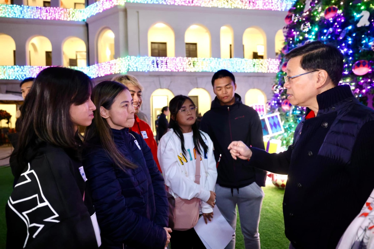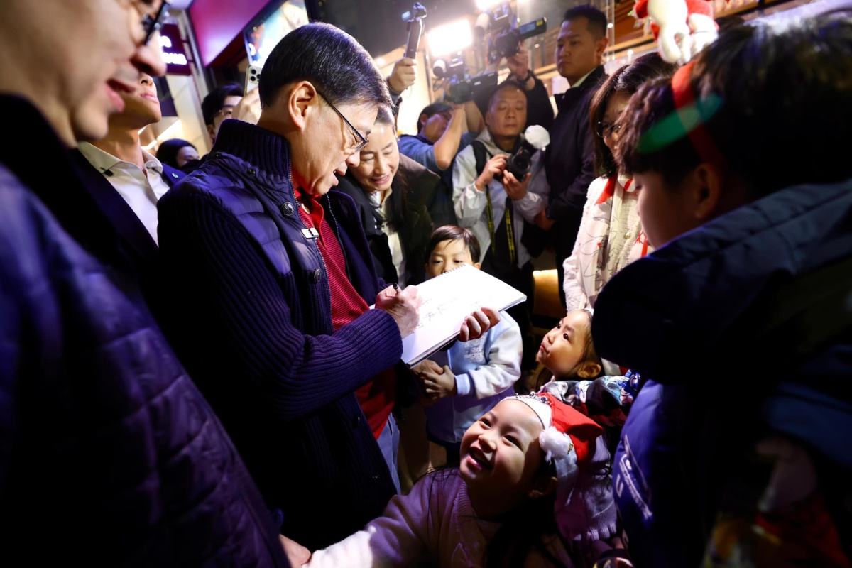 李家超又指,在利東街「吃吃小吃」,「再小酌一口啤酒」,和外國遊客聊聊天,欣賞聖誕飄雪匯演,形容「感覺特別好」。亦有遊客向他表示,香港的聖誕氣氛特別濃厚,匯演也十分精彩。
