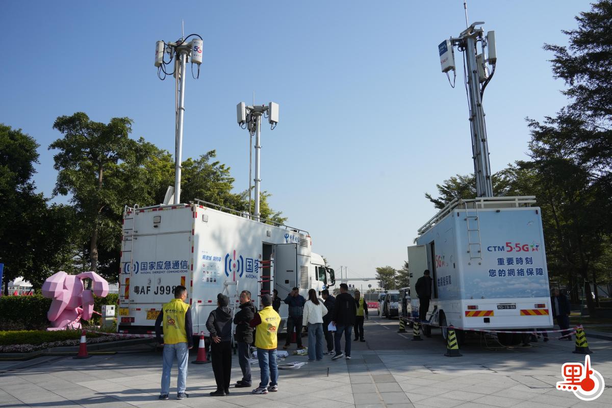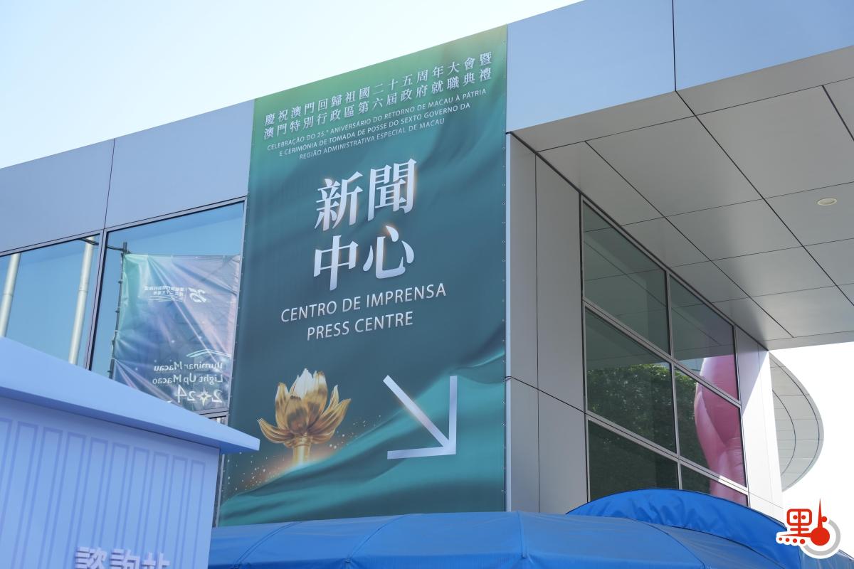 拿好記者包之後,記者便馬不停蹄,前往新聞中心。雖然中心明日才正式開門迎客,但記者出於好奇,希望提前到現場觀察,為接連三日的採訪做好充分準備。現場看到,新聞中心外停泊了兩架應急通信車,分別來自澳門電訊和中國電信,為新聞傳播確保快速、暢通、有效的通信保障。