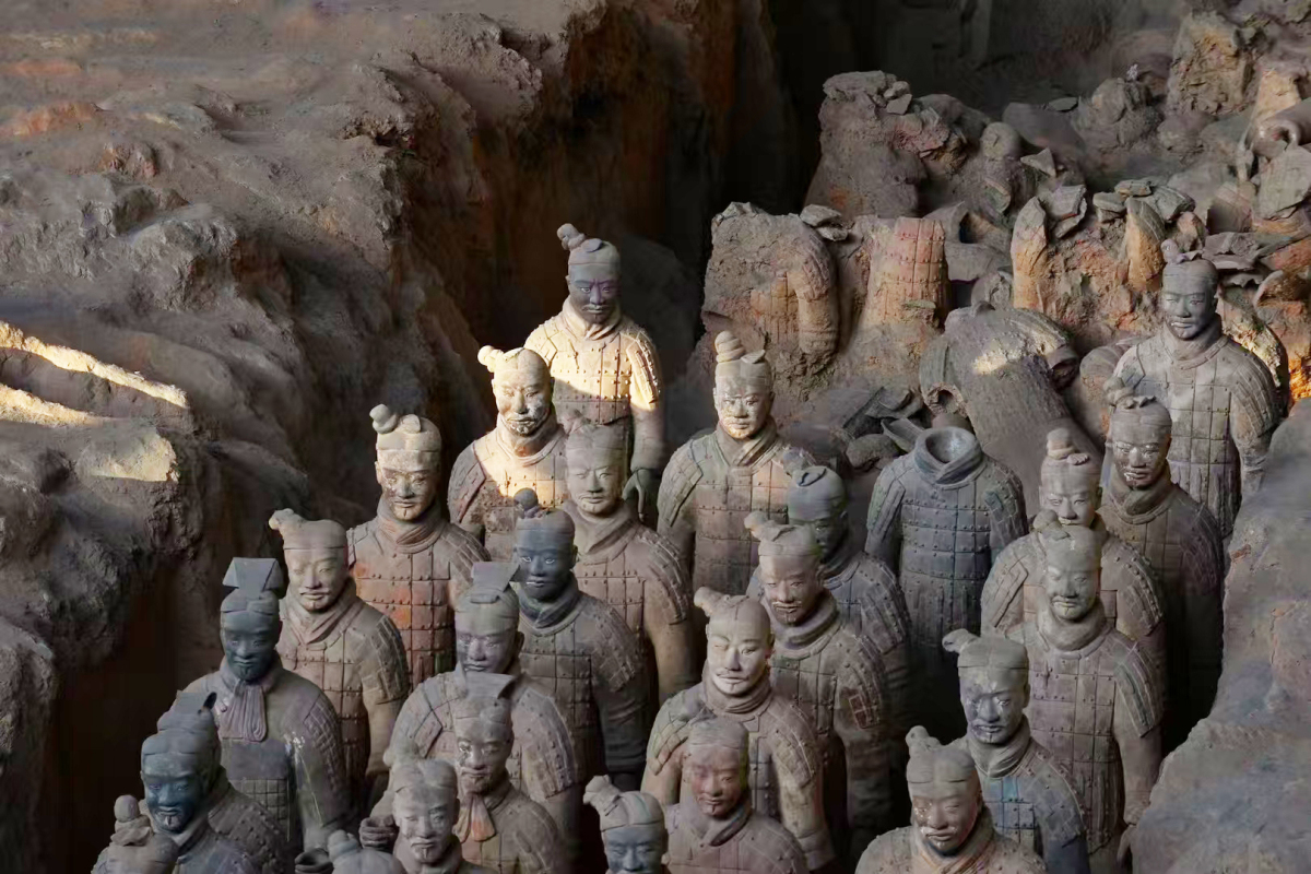 半個世紀來,考古工作者相繼發現了秦兵馬俑一、二、三號坑,總面積超過2萬平方米,發掘出土與真人真馬一般大小的陶俑、陶馬2000多件,以及銅車馬、石甲胄、百戲俑等重要文物。