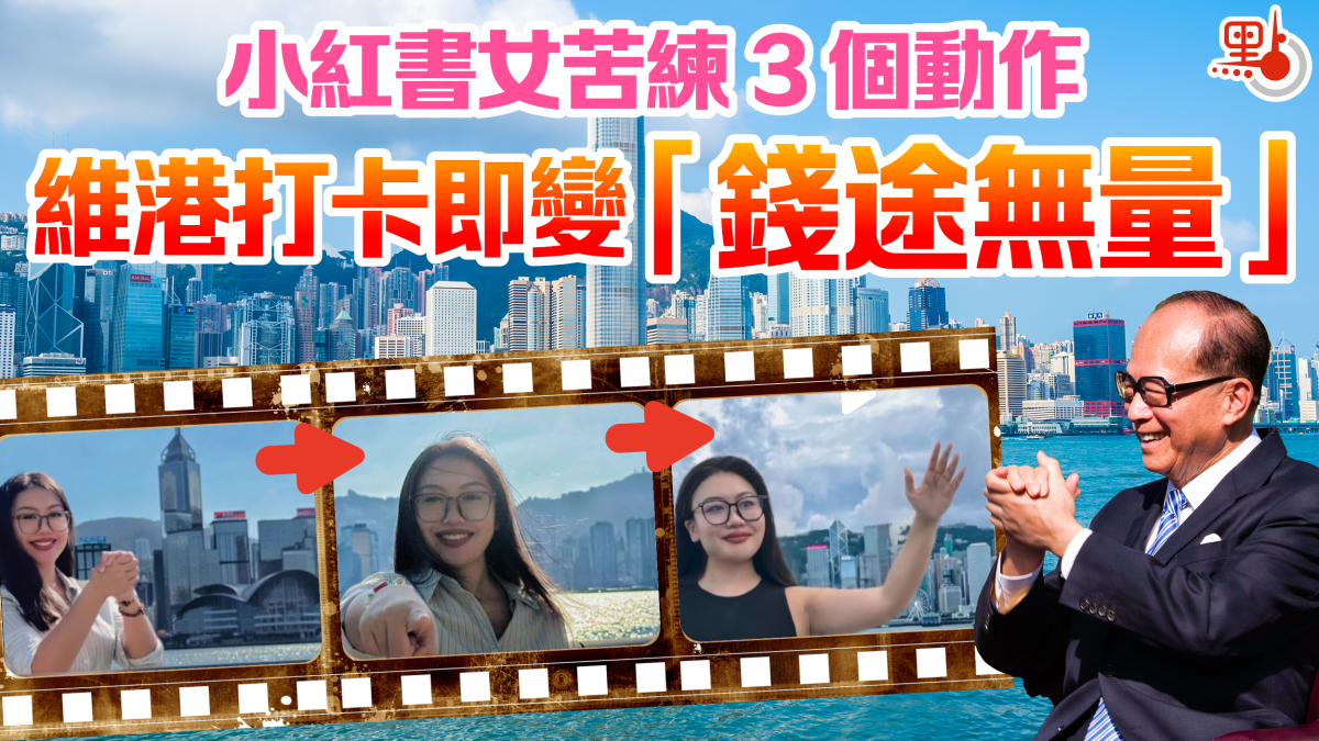 原來,這三個手勢是模仿香港首富李嘉誠先生「誠哥」的招牌動作,她笑言,只要在維港打卡拍照時做了這三個動作,就可以「錢途無量」、「指誰誰發達」、「沒錯就是你!!」