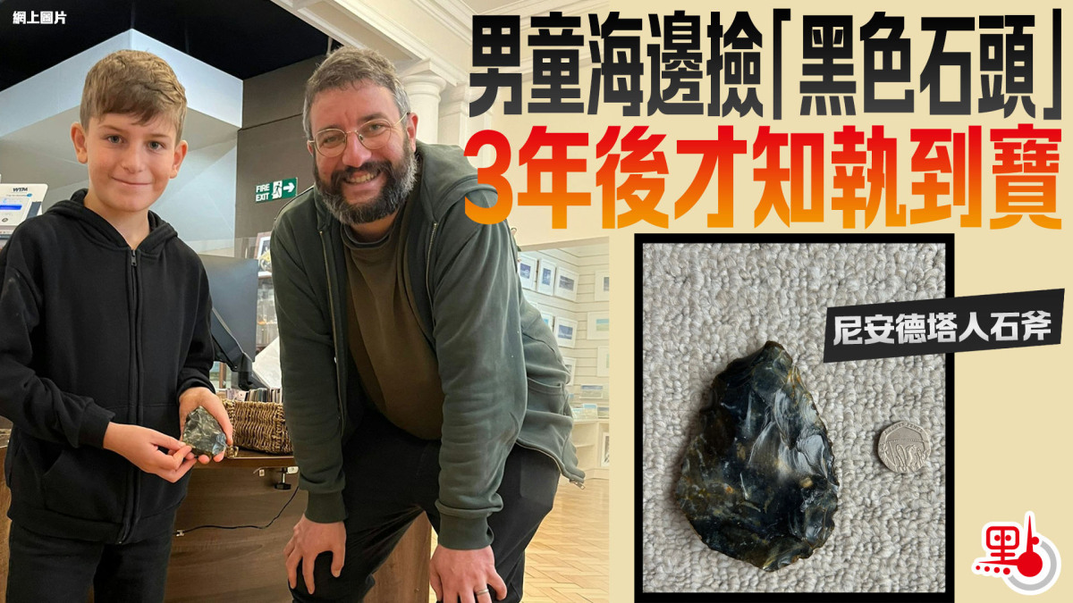 【點新聞報道】英國9歲男童威登(Ben Witten)先前去逛博物館的石器時代展覽時,發現其中一個黑色石頭的展覽品,跟他3年前在海邊撿到的「黑色石頭」很像。經專家確認後,才知道他撿到的是約4萬年前尼安德塔人(Neanderthal)所使用的珍貴石斧。