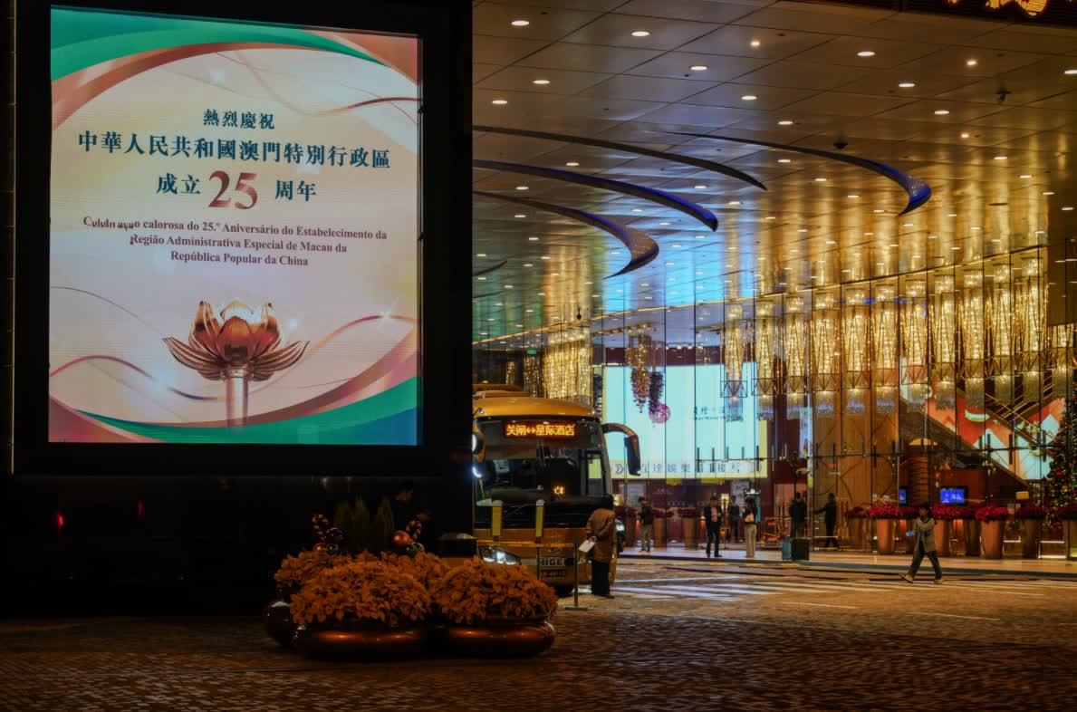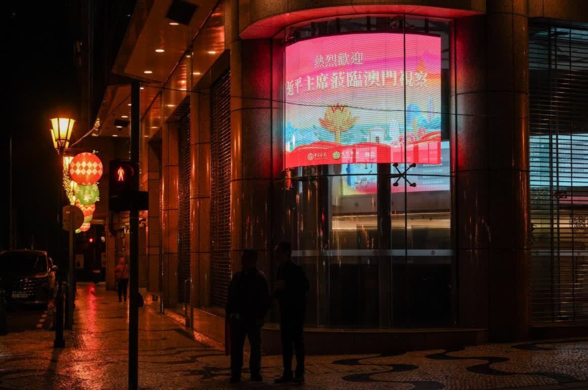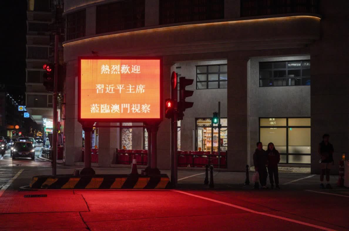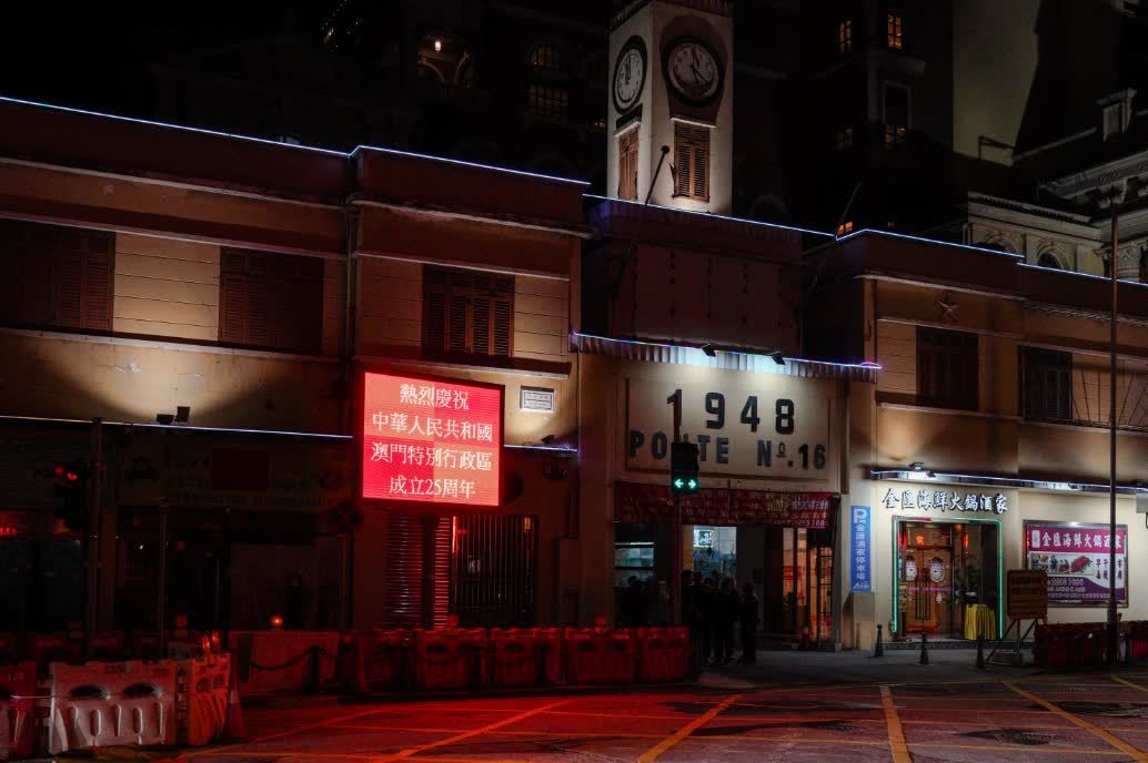 澳門多個地方都有電子屏幕顯示「慶祝澳門回歸25周年」和「歡迎習主席蒞臨澳門視察」的標語,在晚上更加顯眼,澳門市民及遊客無論何時出行,都能看到璀璨燈光,一同感受慶祝回歸的喜悅及歡樂。