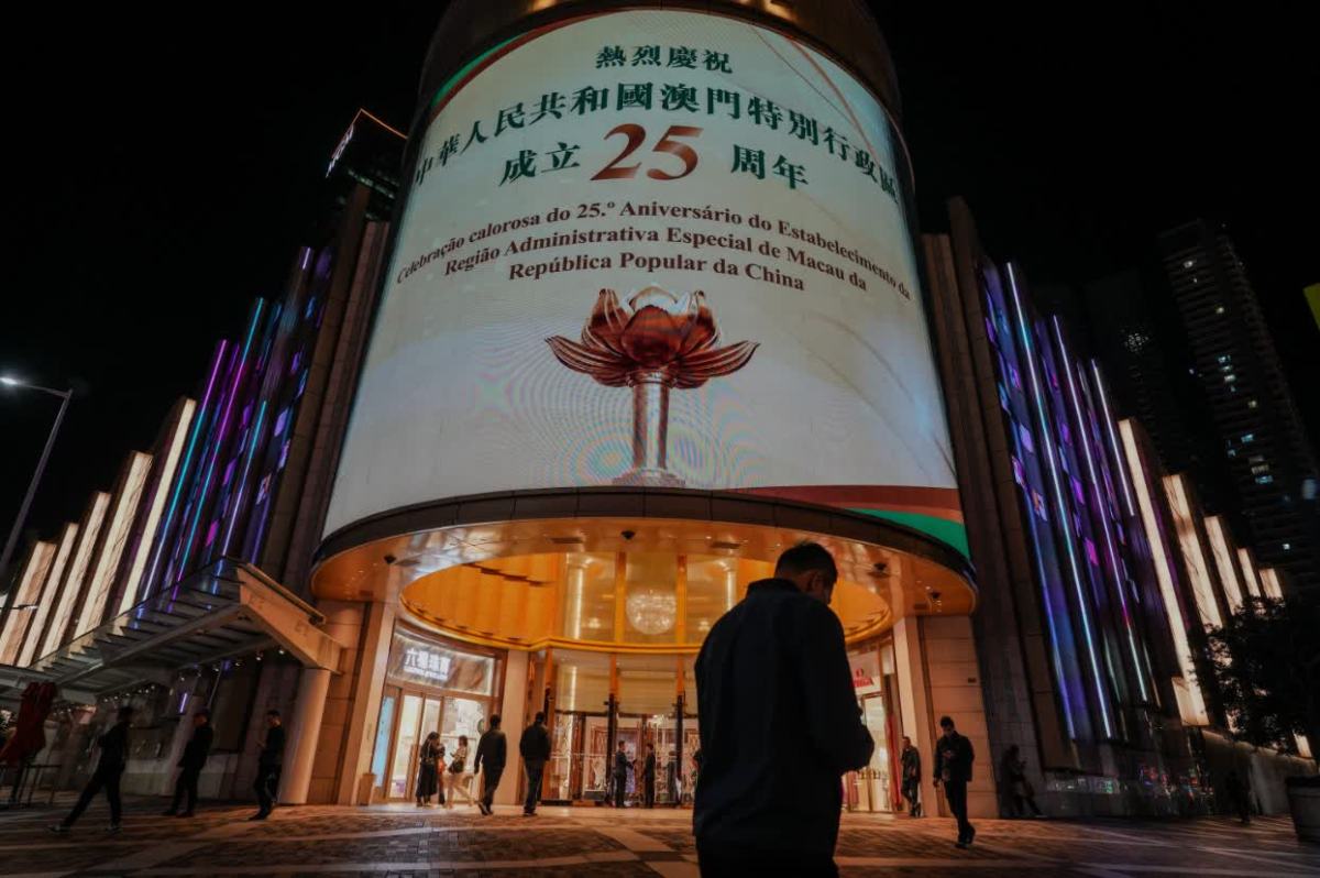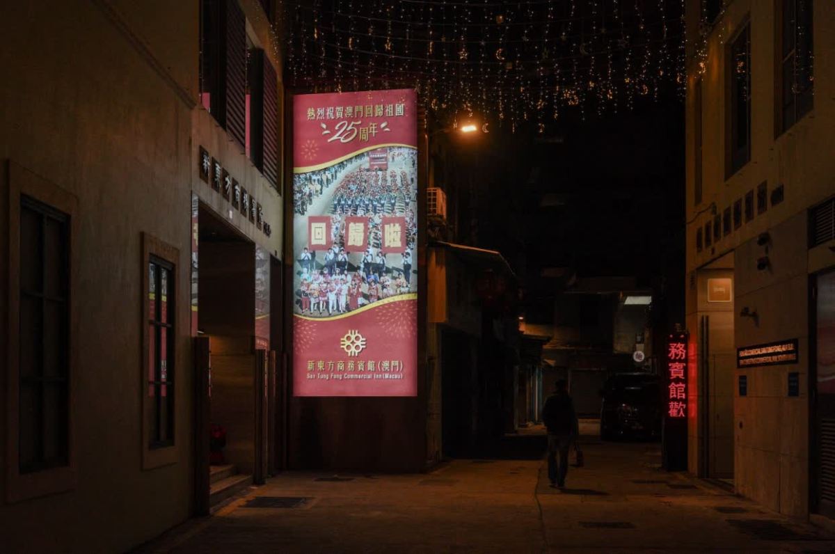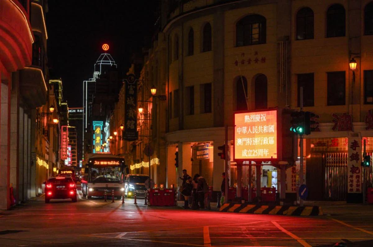 澳門多個地方都有電子屏幕顯示「慶祝澳門回歸25周年」和「歡迎習主席蒞臨澳門視察」的標語,在晚上更加顯眼,澳門市民及遊客無論何時出行,都能看到璀璨燈光,一同感受慶祝回歸的喜悅及歡樂。