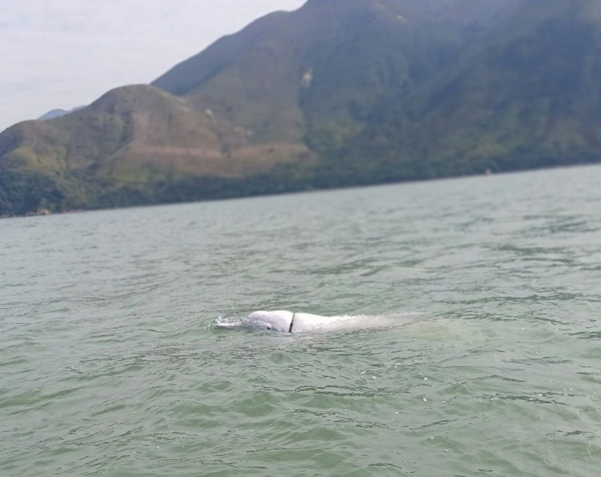 【點新聞報道】有網民昨日(18日)於社交平台上載圖片,指在大澳海面發現一隻中華白海豚頸部纏繩,深入皮肉,擔心其生命安全。有關注海豚的組織指,持續關注自4月起頸部纏繩的「V仔」,指牠多月來活動正常,不宜捕捉或麻醉牠,為免造成更大傷害。