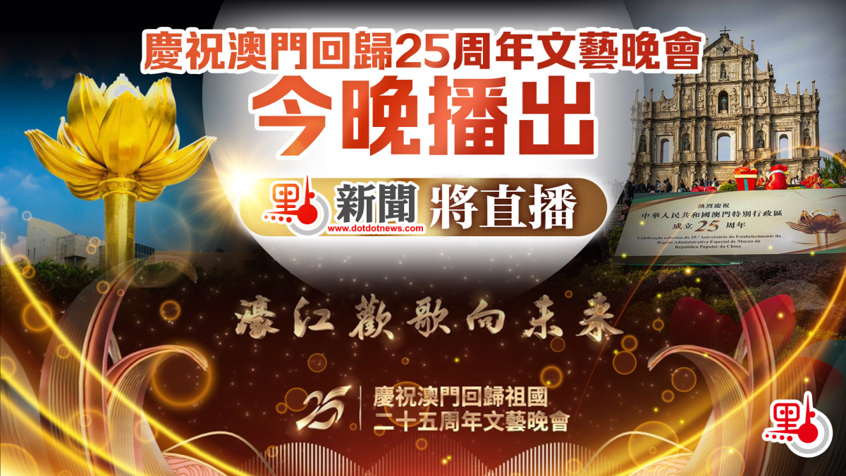 【點新聞報道】據央視新聞報道,12月19日晚8時,由澳門特別行政區政府主辦、中央廣播電視總台製作的《濠江歡歌向未來——慶祝澳門回歸祖國二十五周年文藝晚會》將在總台多個電視頻道、廣播頻率和新媒體平台同步直播。點新聞將同步直播,敬請關注。