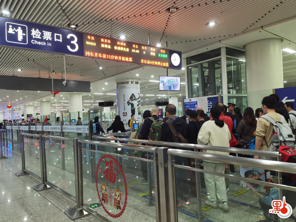 為方便跨境旅客購票,售票廳內設置香港西九龍購票專窗,安排全程引導服務,確保旅客在購票、安檢、乘車等各個環節都能得到及時的幫助與指引。此外,候車室還設置充電桌供旅客免費使用,提升出行體驗的同時也體現鐵路部門對旅客需求的細緻關注和積極響應。