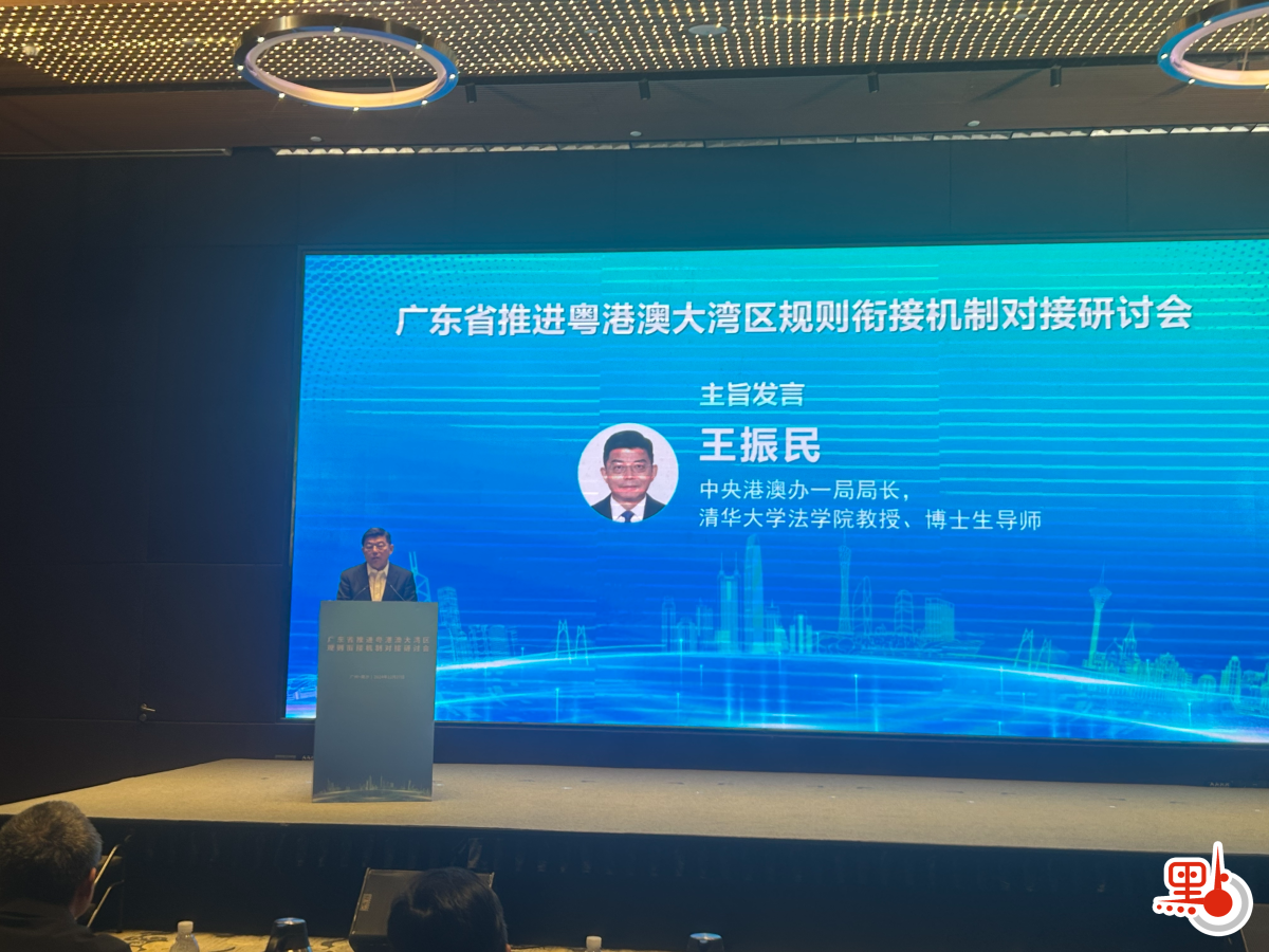 【點新聞報道】廣東省推進粵港澳大灣區規則銜接、機制對接研討會今日(27日)在廣州南沙舉行。廣東省、市大灣區辦負責人、港澳特區政府代表、粵港澳重大合作平台相關負責人及港澳及大灣區研究專家等100多人參加,圍繞探索創新與港澳合作的體制機制,加快推進粵港澳規則銜接、機制對接,推動重大平台協同聯動作了主旨發言,建言獻策。