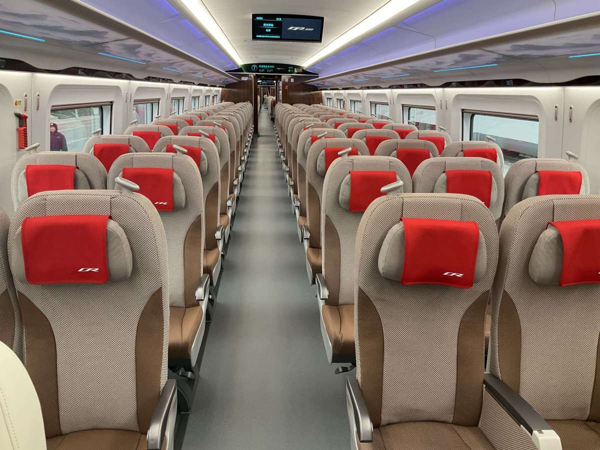 據了解,CR450動車組樣車運營速度、運行能耗、車內噪聲、制動距離等主要指標均實現國際領先。一是更高速:試驗速度時速450公里,運營速度時速400公里,未來投入商業運營後可進一步壓縮時空距離,讓旅客出行更加便捷高效;二是更安全:制動距離更短、運行穩定性更優,在運營速度提升的情況下,制動距離基本相當;三是更節能:動車組整車運行阻力降低22%,減重10%;四是更舒適:舒適度指標更優,車內噪聲降低2分貝,客室服務空間增加4%,可為旅客提供多樣化、便利化、個性化服務,乘坐體驗更好;五是更智能:行車與控制、司機智能交互、安全監控、旅客智能服務等領域均得到全面升級。
