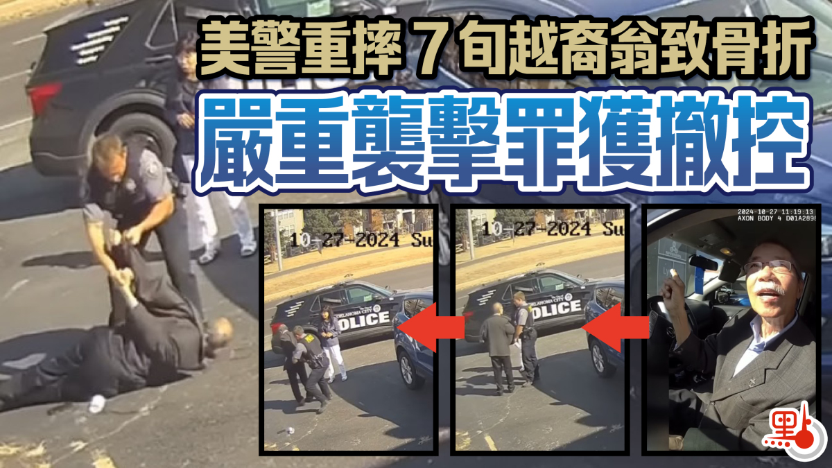 【點新聞報道】美國俄克拉荷馬州早前發生越南裔老翁被警員摔傷、導致頸部骨折的案件,涉事28歲警員吉布森(Joseph Gibson)被檢方指控嚴重襲擊和毆打傷人罪,但州總檢察長德拉蒙德(Gentner Drummond)介入撤控。警員工會認為做法正確,這使得原本負責案件的檢察官與亞裔社區表示失望。
