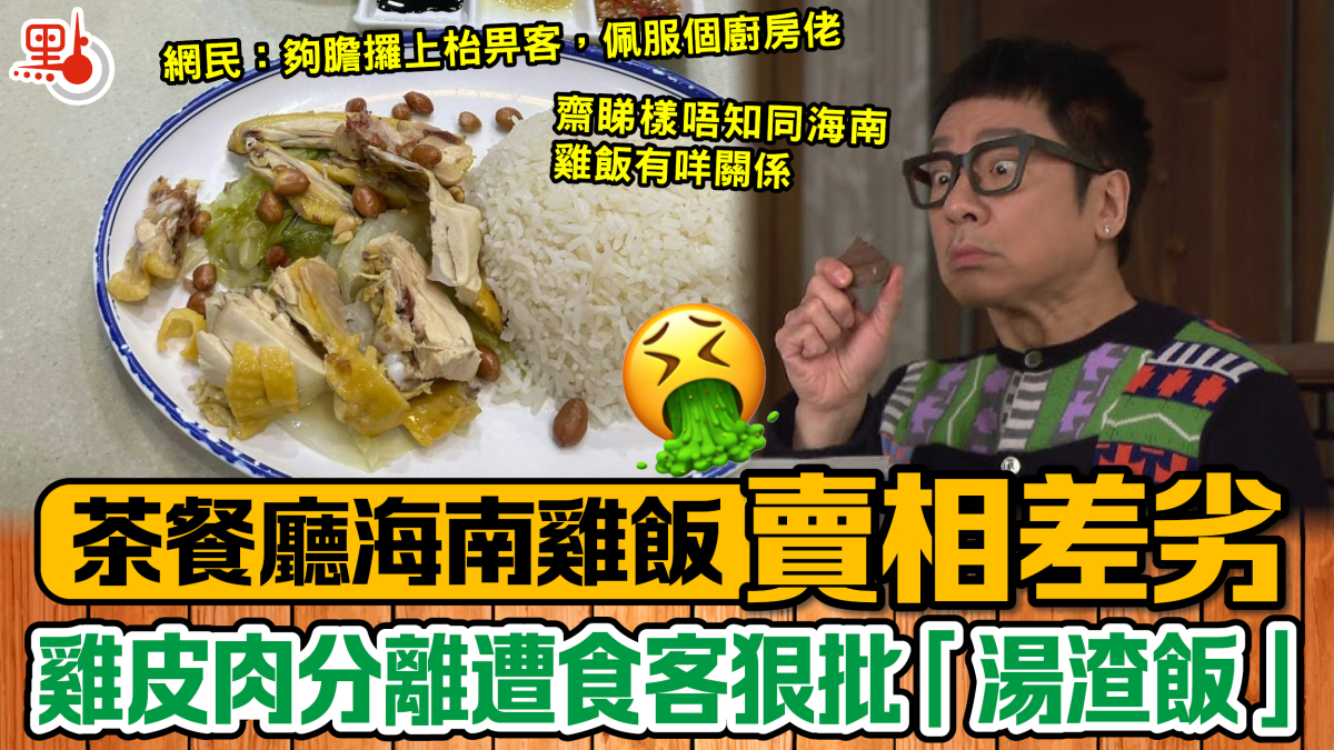 【點新聞報道】食物除了味道以外,賣相也十分重要。近日,有食客發帖大呻「中伏」,稱於大角咀某茶餐廳點了一份海南雞飯,惟雞飯上桌時賣相卻不似預期。食客指雞肉沒有油潤滑嫩,反而是肉質偏乾之餘,還擺放到七零八落、皮肉分離,感覺就好像從湯煲撈出後放飯般,不禁嘲諷形容此飯是「海南湯渣飯」。