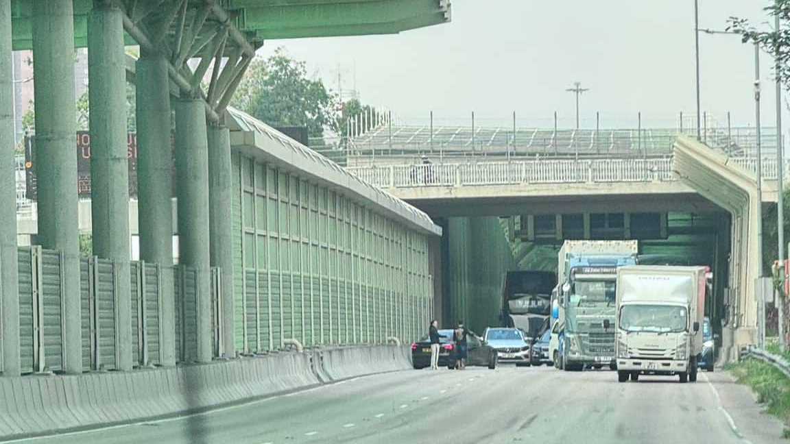 【點新聞報道】屯門公路發生交通意外。今日(31日)下午近4時,一輛黑色Tesla沿屯門公路往九龍方向行駛,至新墟變電站對開時與一輛貨車發生相撞。現場交通嚴重受阻,車龍一度長達5公里,Tesla司機報稱腰及頸痛,需在場接受治理。
