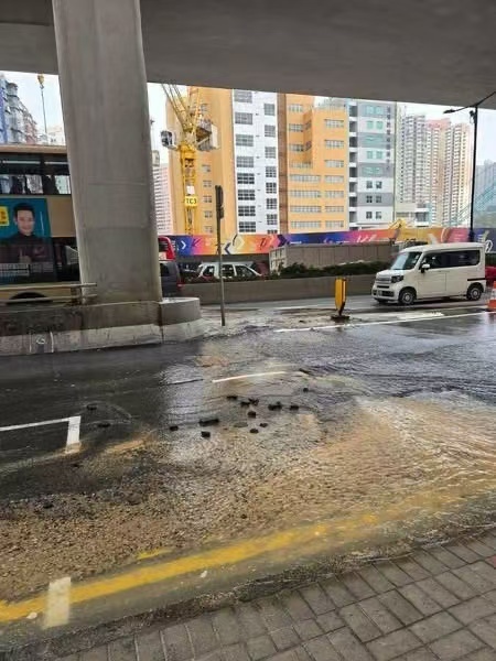水務署表示,受事故影響,觀塘道(往旺角方向)近開源道迴旋處的部分慢線及中線須暫時封閉,以配合緊急維修工作。