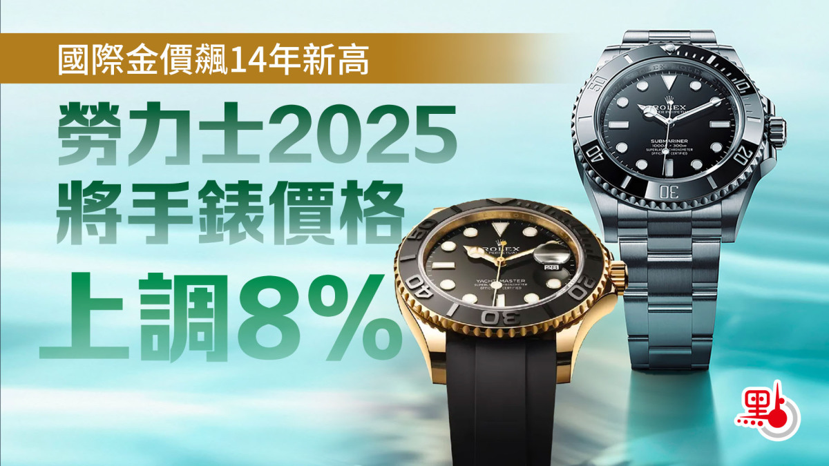 勞力士通常會在每年1月1日加價一次,從漲幅可觀察高級奢侈品的需求、原料與勞動力成本,以及通膨情形。值得注意的是,2024年金價年度漲幅高達27%,創下14年來新高。