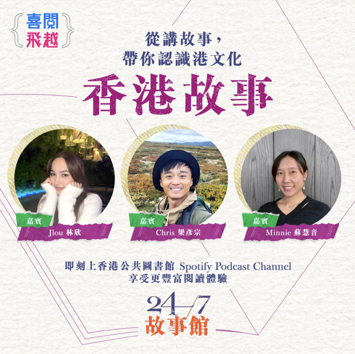 更多「24/7故事館」精彩節目內容將陸續上載,市民可以透過Spotify平台播客頻道專頁(open.spotify.com/show/4xeYheVkfJCsMnM44XEobu)或透過該平台的手機應用程式收聽。