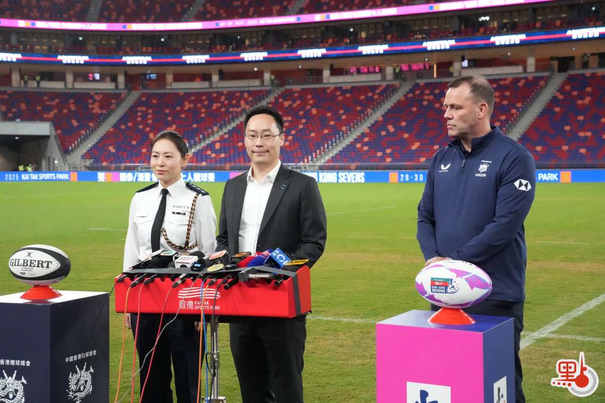 被問到今日有無觀眾穿着奇裝異服進場,以及日後舉行國際7人欖球賽時,手持打氣棒等能否進場。蔡健斌說,今日見不到有人穿着特別服飾而不能入場,場館禁止攜帶超過35厘米長的物品,包括雨傘進場,至於能否帶打氣捧要視乎長度。