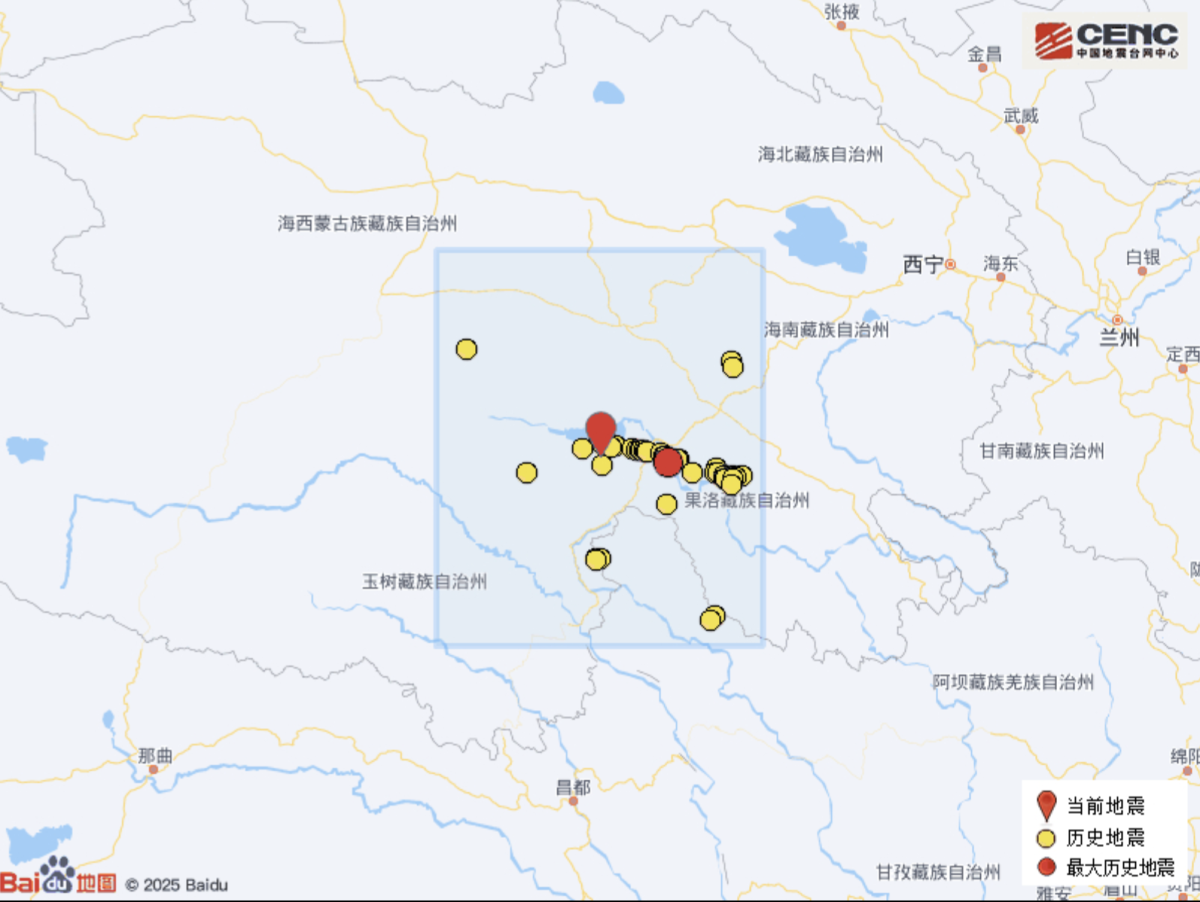 據悉,震中周邊200公里內近5年來發生3級以上地震共102次,最大地震是2021年5月22日在青海果洛州瑪多縣發生的7.4級地震(距離本次震中79公里)。
