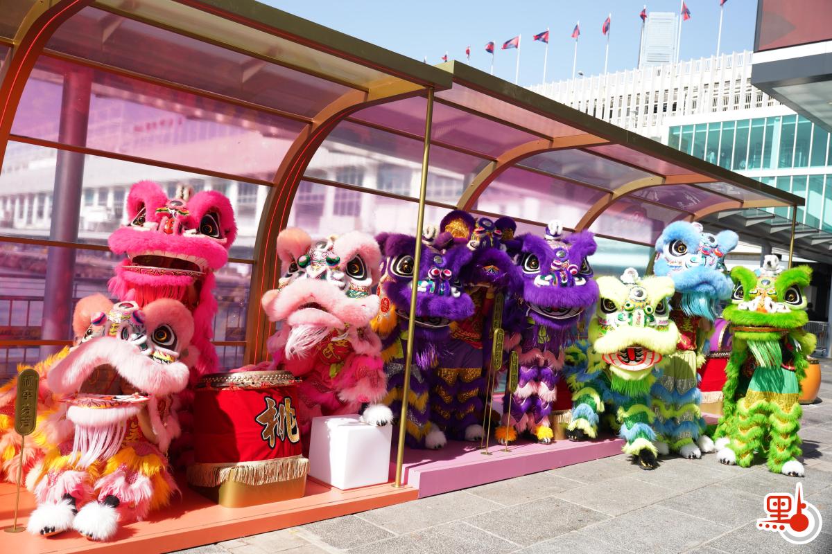 海運大廈露天廣場將會設置28米長的「百彩醒獅長廊」,展出13個傳統中國鼓及18頭醒獅。每款顏色的醒獅都承載着獨特的新春祝賀,例如「飛『黃』騰達」、「一炮而『紅』」、「平步『青』雲」等等,希望大家摸摸獅頭,鴻運當頭;敲起開運大鼓,敲響新春好意頭。長廊頂部的幻彩燈片在陽光下折射出不同顏色,祝福大家新一年大放光芒!