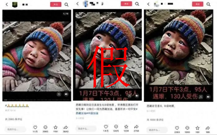 【點新聞報道】1月7日,西藏定日縣發生6.8級地震,災情讓許多網友掛心。此時,一系列「小男孩被埋圖」在互聯網平台廣泛傳播,並配文日喀則地震等關鍵詞,引發大量網民關注,甚至獲得好幾萬的轉評讚。