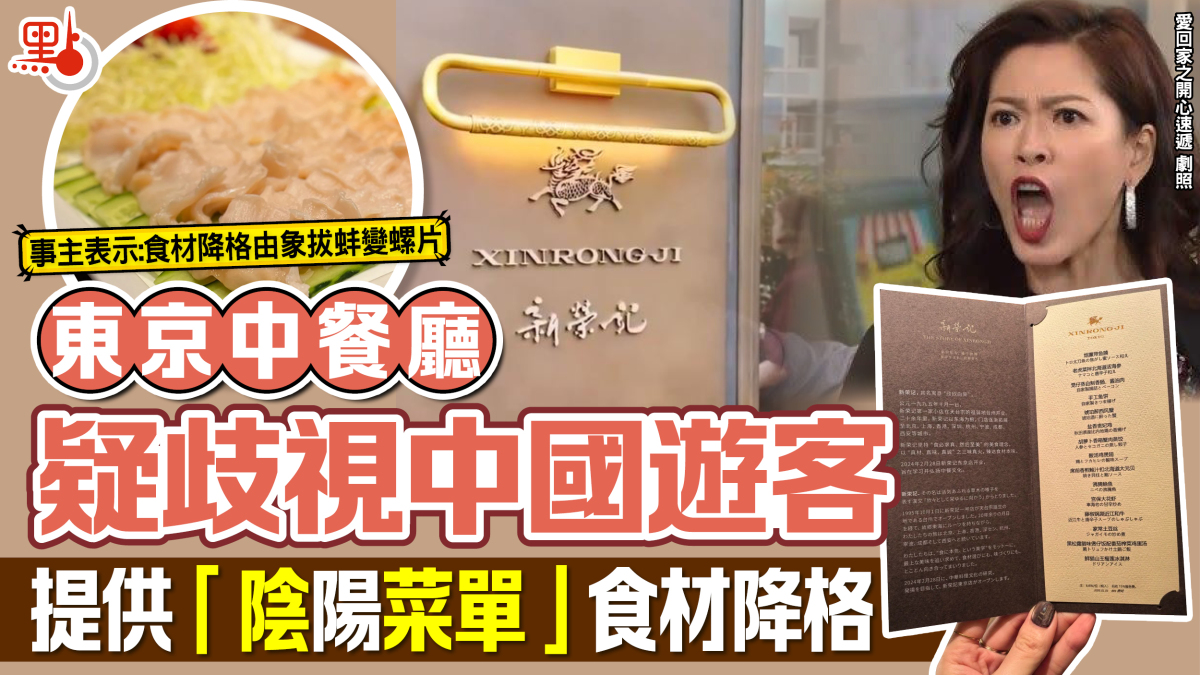 【點新聞報道】曾摘多顆米芝蓮星的中餐霸主新榮記,其東京店被中國遊客質疑區別對待,原因是店家提供「陰陽菜單」。事主表示,同樣8.8萬日圓的單人套餐,自己的食材卻降格,由象拔蚌變螺片,貴妃雞降成乳鴿,懷疑店家歧視中國遊客。目前,涉事門店已就事件道歉,承認未與客人確認菜單「非常不專業」。