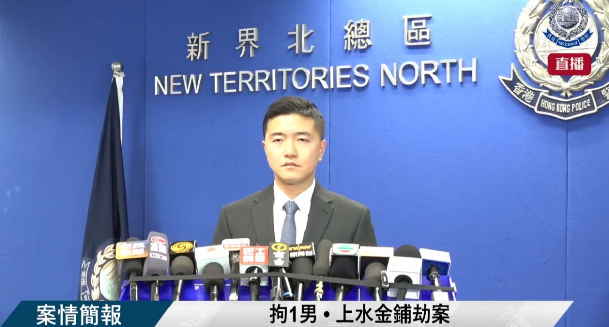 警方指,案發昨日傍晚,上水一間金舖遭4名蒙面人搶劫,賊人用鐵錘打爛金舖櫥窗及飾柜,並用利刀指嚇店員,之後在金舖大肆搶掠,案發期間盜取總值超過150萬元金飾。賊人得手後登上接應私家車向錦田方向逃去。警方續指,涉事私家車在林錦公路同另一輛私家車相撞,賊人落車逃去無蹤,車上遺下作案時利用的利刀及鐵錘,人員經搜索後在附近山邊找到賊人遺下的衣物及口罩。事故中一名無辜男司機受傷,報稱頸部受傷,須留院治理。