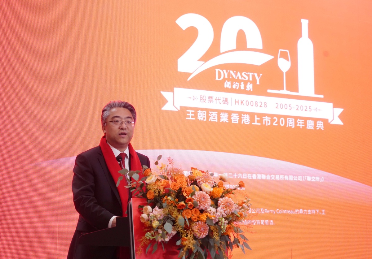 王朝酒業香港上市20周年慶典活動在港舉行,天津食品集團董事長、王朝酒業集團董事會主席萬守朋表示,自2005年到2025年,這是王朝充滿挑戰與拚搏的20年,是不斷探索與創新的20年,更是收穫與榮耀的20年。相信在未來的征程中,王朝將繼續秉承開放合作的理念,集眾智、繪新卷、起宏圖,與所有夥伴攜手前行,把握新機遇展現新作為,書寫更加輝煌的篇章。