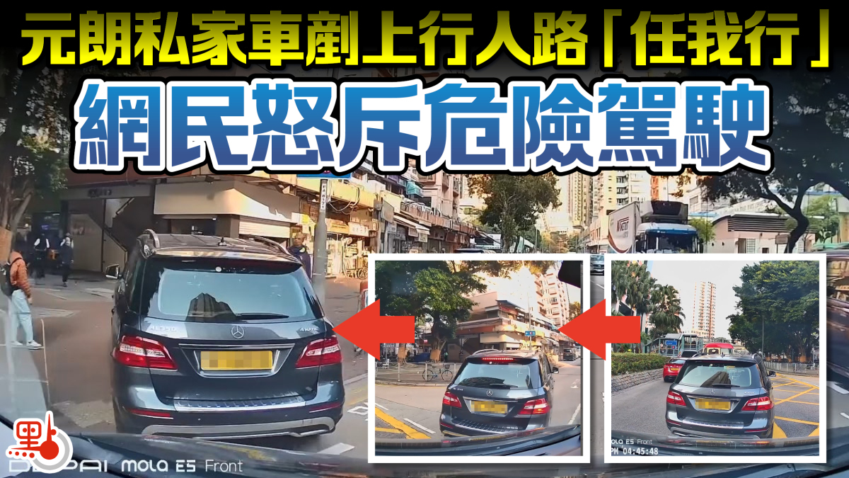 【點新聞報道】元朗有私家車「大地任我行」超級危險!有網民昨在社交網上載一段「車Cam」片,可見一輛平治私家車轉入鳳攸北街,竟無視正等候過馬路的途人,「直剷」上行人路行駛,尾隨車輛的司機亦不禁「嘩」了一聲。片段引起熱議,不少網民怒斥平治司機危險駕駛。