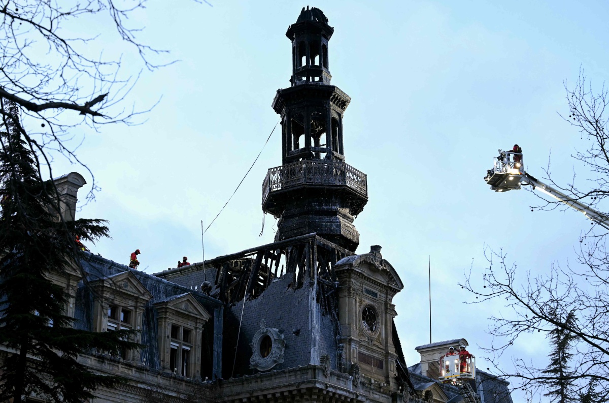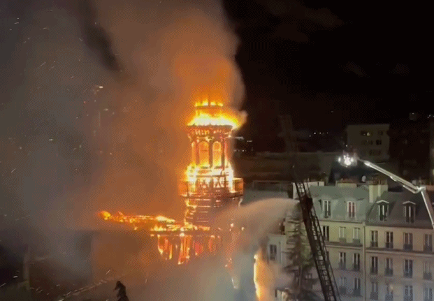 據悉,火災造成市政廳30米高的鐘樓被燒毀,未造成人員傷亡,起火原因尚在調查中。