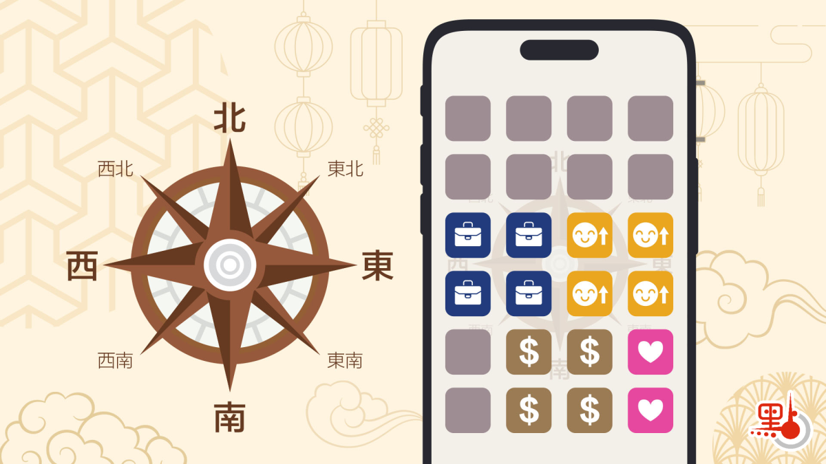 麥玲玲分享,第一步當手機界面是一個上北下南的方位,若街坊想要財運好,就將與財運有關的APP,譬如銀行、馬會投注等等,移動放置在正南方,即「歡喜財」財位。而如果街坊想要桃花運,則將交友相關APP放在東南方。另外,想找工作或者追求事業運的街坊,可以將找工作APP或者跟與現在工作有關的APP放在正西邊。最後,如果是關於各類喜事的運勢,例如添丁買樓,就將相關APP放在東邊。麥玲玲也提到,若對某種運勢比較感興趣,就可以在相應方位多放置一些,好運自然滾滾來!