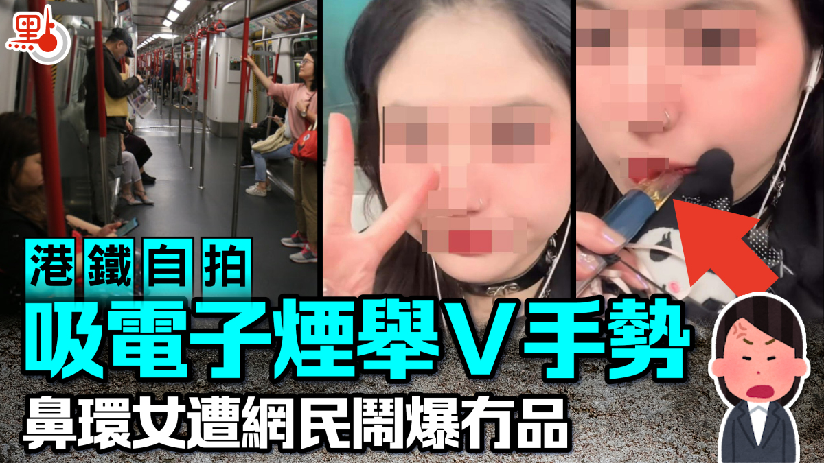 【點新聞報道】港鐵範圍內嚴禁吸煙!網上近日流傳一段女子乘搭港鐵時自拍吸食電子煙的影片,更對着鏡頭舉起「V」字手勢。影片引起網上熱議,不少網民直斥她行為自私,「確實乞人憎」、「冇品」、「犯法」。