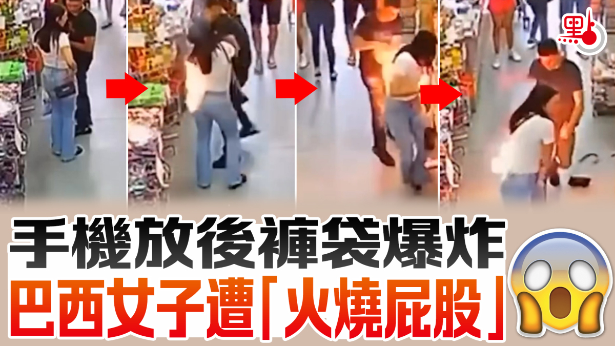 據外媒報道,事發於本月8日,閉路電視拍到受害女子和丈夫一同在超市購物,不過她放在褲子後方口袋的手機竟突然爆炸,火光瞬間從口袋炸出,女子在褲子起火後痛苦地掙扎,丈夫則追着她、試圖將火撲滅。店內其他目睹事件的顧客也被嚇到。