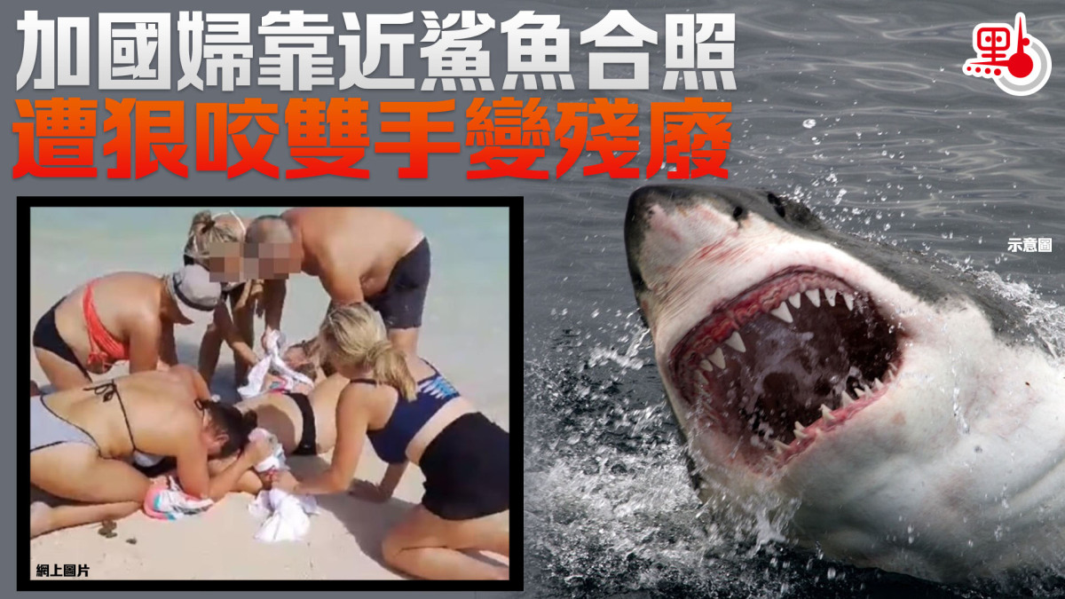 【點新聞報道】一名加拿大女遊客近日與家人前往加勒比海島嶼度假,看到有鯊魚接近海岸線附近,於是興奮地靠近拍照之際,突然遭到鯊魚攻擊,雙手和其中一條腿都咬傷。