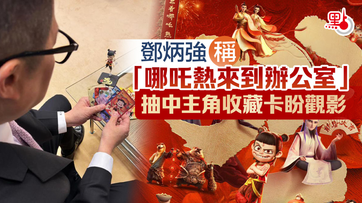 鄧炳強更提到這股熱潮已經來到辦公室,很多同事已經迫不及待回到內地先睹為快,還有同事即刻買了電影收藏卡和大家分享,他也趁熱鬧一起抽,還抽到主角哪吒的收藏卡,直言很期待快點去看這部爆火動畫。